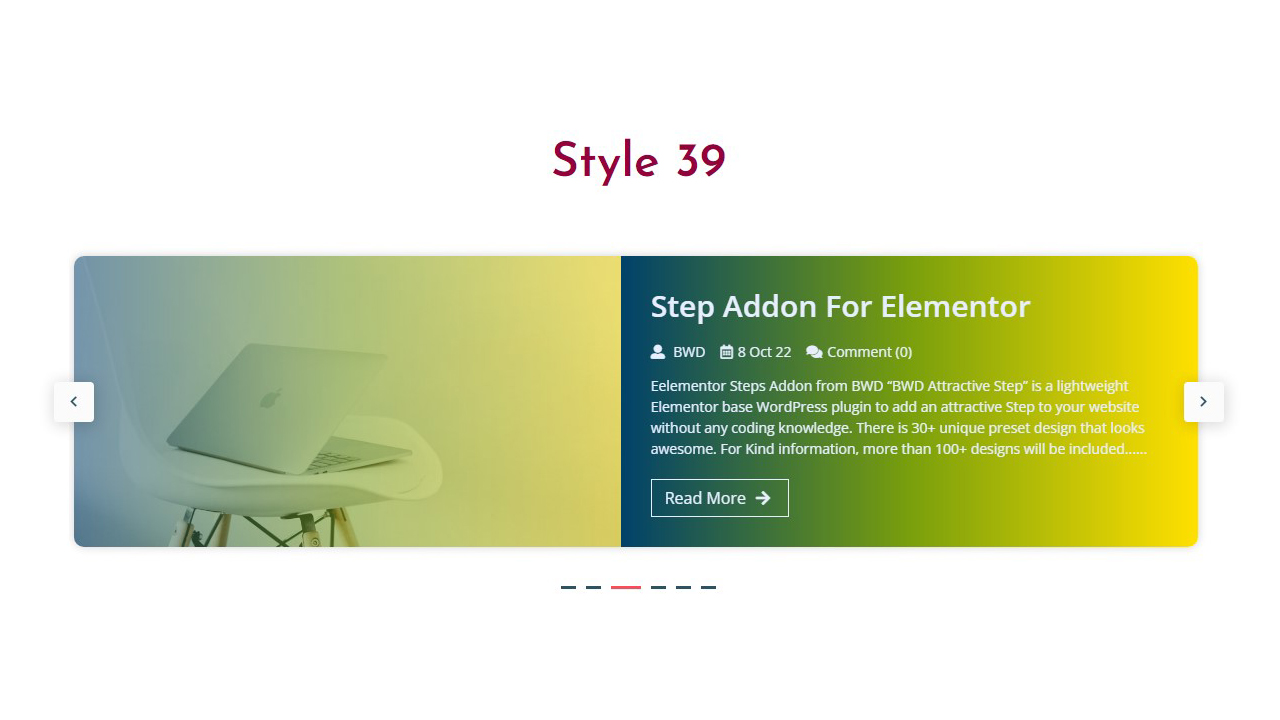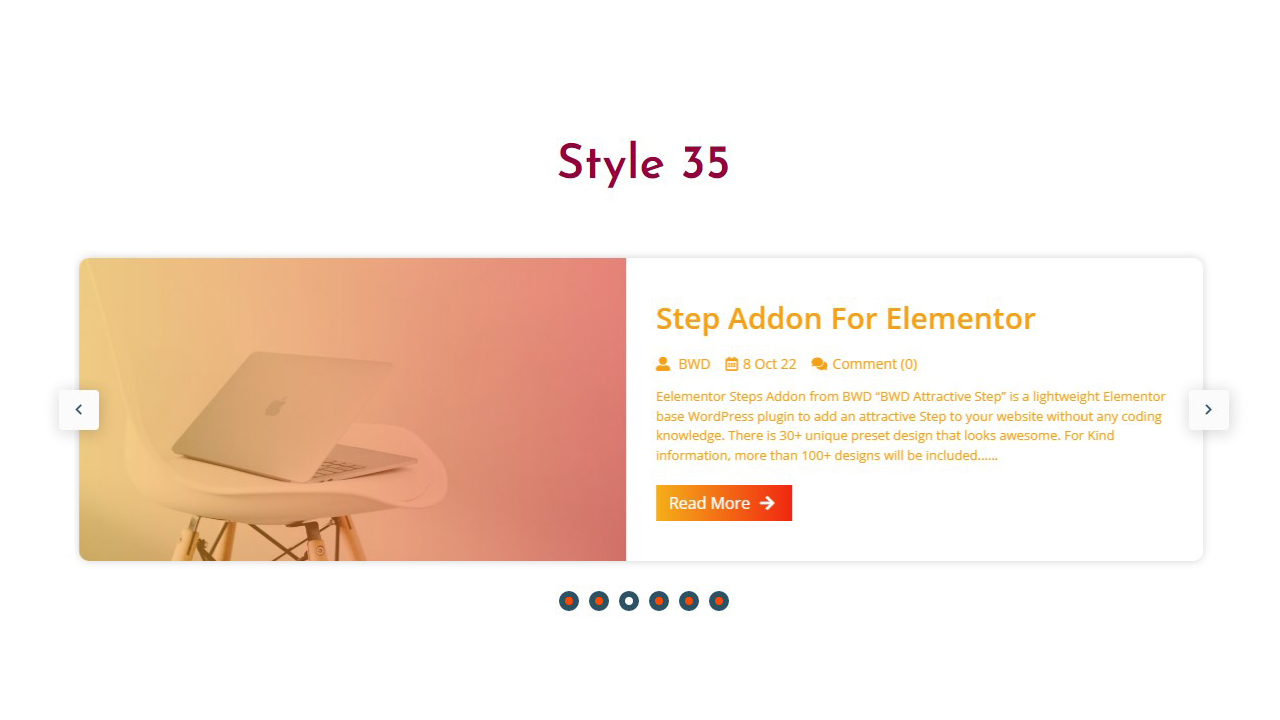 - Attractive Step – BWD Attractive Step is a lightweight Elementor base WordPress plugin to add an attractive Step to your website. There are 30+ unique preset designs that look awesome.