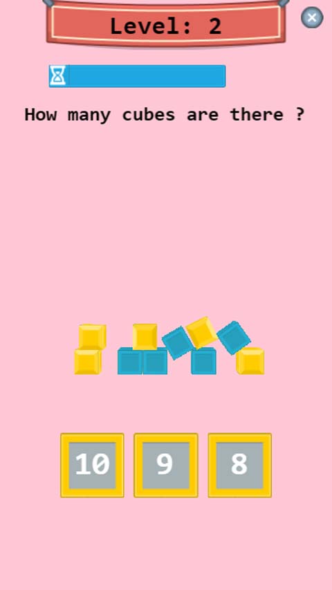 Get ready to put your counting skills to the test in Cube Count, this engaging activity challenges players to quickly and accurately count the number of cubes displayed on-screen. With each level, the number of cubes increases, pushing your analytical abilities to the limit!