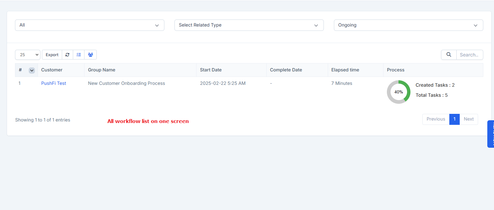 Once a workflow is assigned to a customer or lead, it initiates automatically, progressing through each task in the defined sequence. As each task is completed, the next one begins without manual intervention. Upon the completion of all tasks, the workflow is marked as “completed,” ensuring a seamless and efficient process management experience.