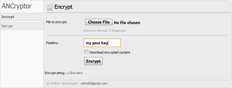 Encryption algorithm is designed and discovered by Arlind Nushi, author of this script and named ANCrypt.