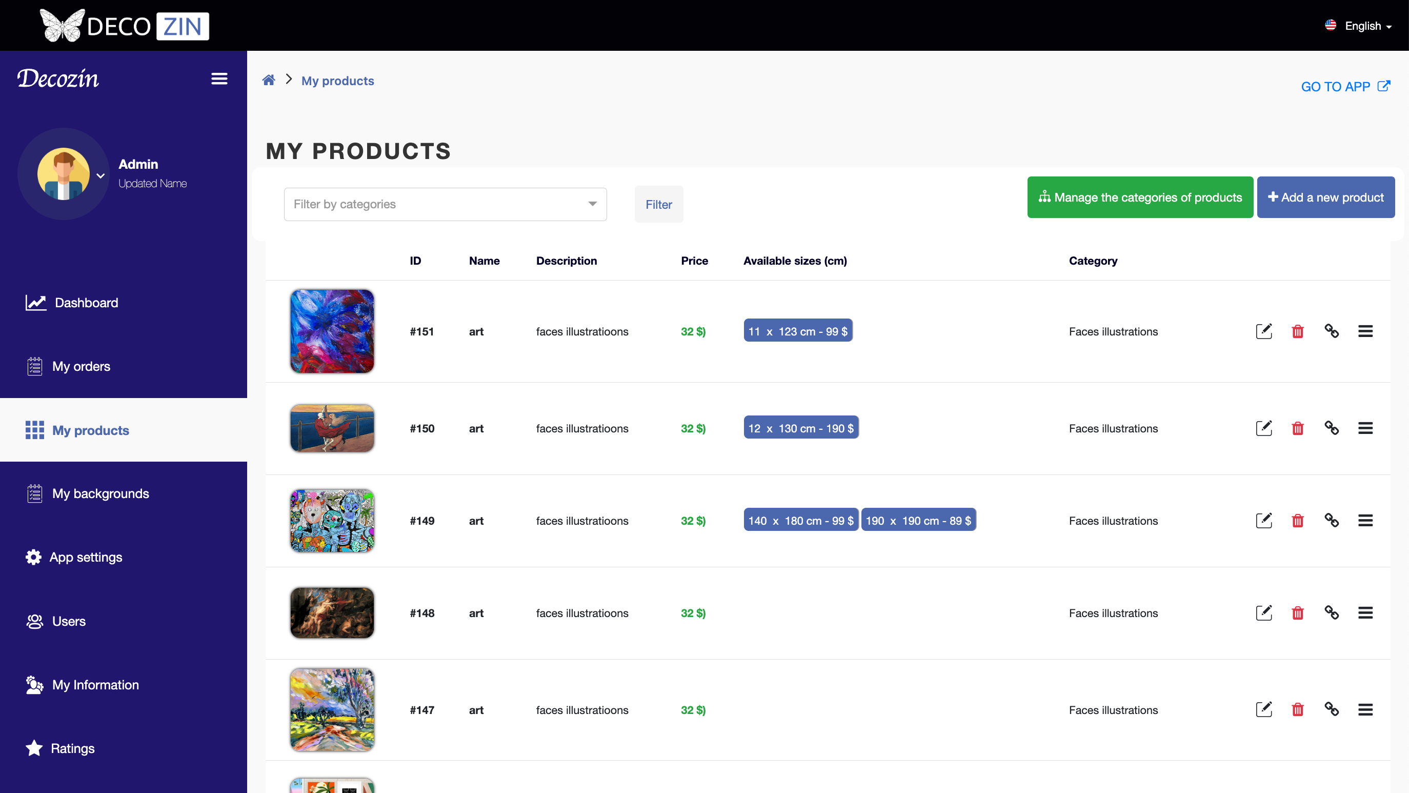- Adding and managing products: The admin can add new products (paintings) to the website, modify existing products, or remove products that are no longer available. They can also manage the images associated with each product, as well as the pricing and other relevant information.
