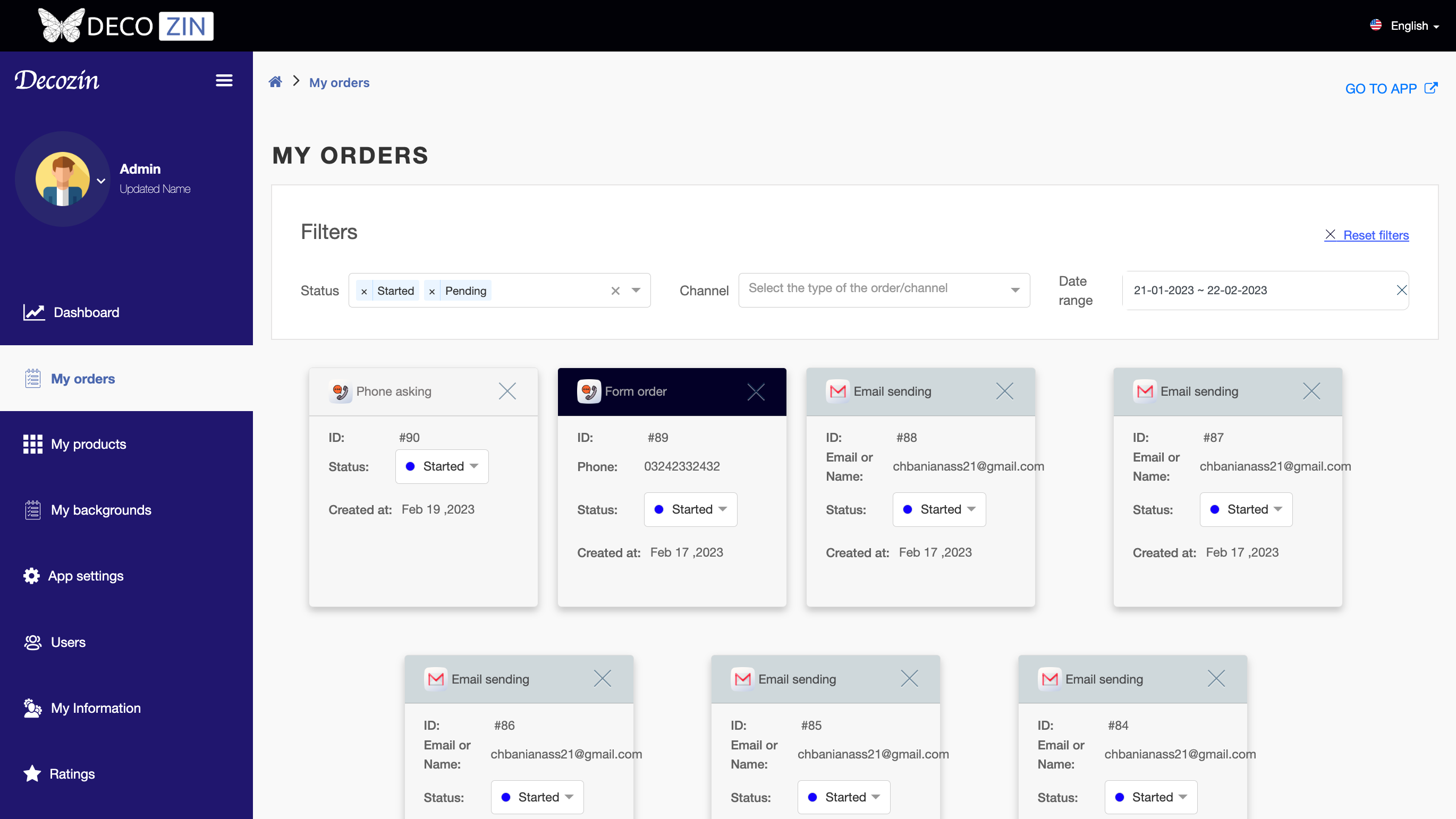 The administration section of Decozin is only accessible to the business owner, who acts as the admin of the website. The admin has the ability to create user accounts for managers, who can help add, update, or delete backgrounds and products (paintings), manage orders, and perform other tasks related to the day-to-day operations of the business.