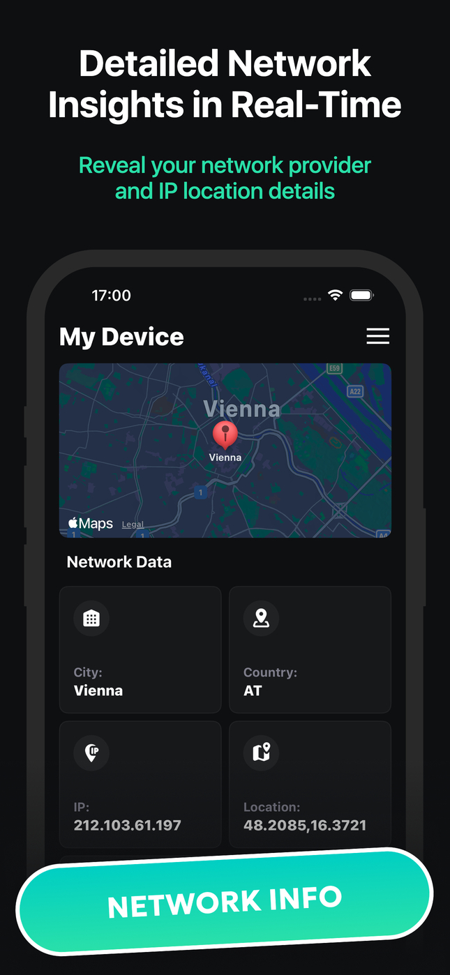 • IP & Network Insights – Display current IP address, location, provider, and more using a clean dashboard.