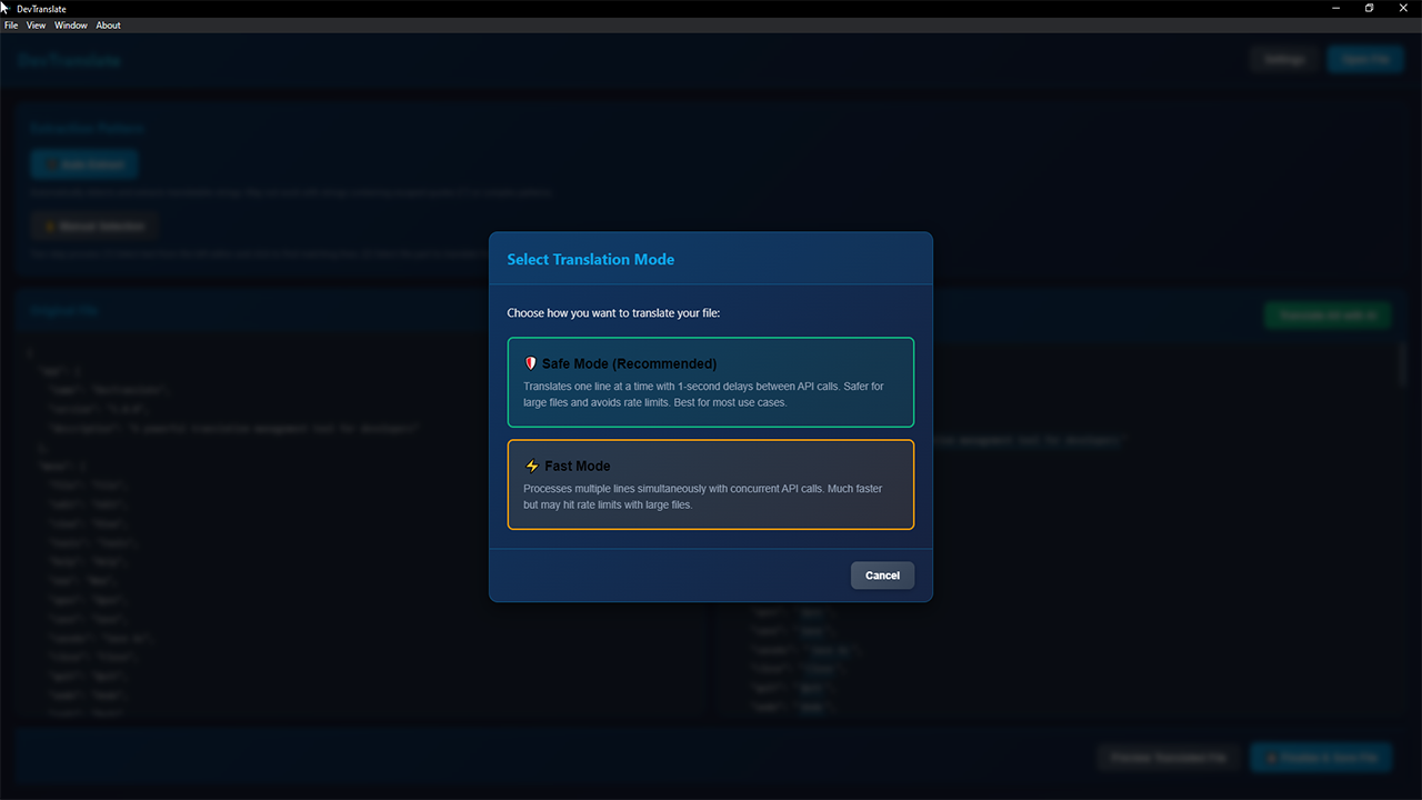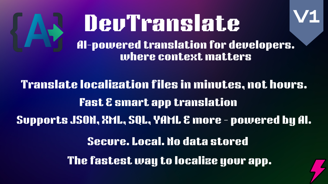 DevTranslate removes the friction from localization. No broken files. No tedious copy-paste. Just fast, accurate translations built for developers.