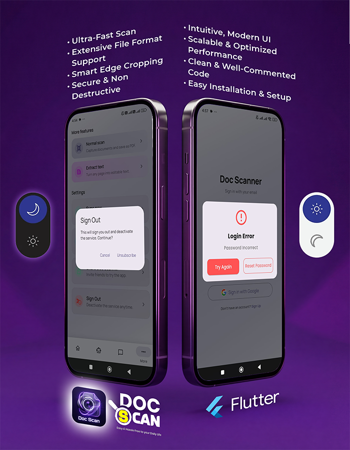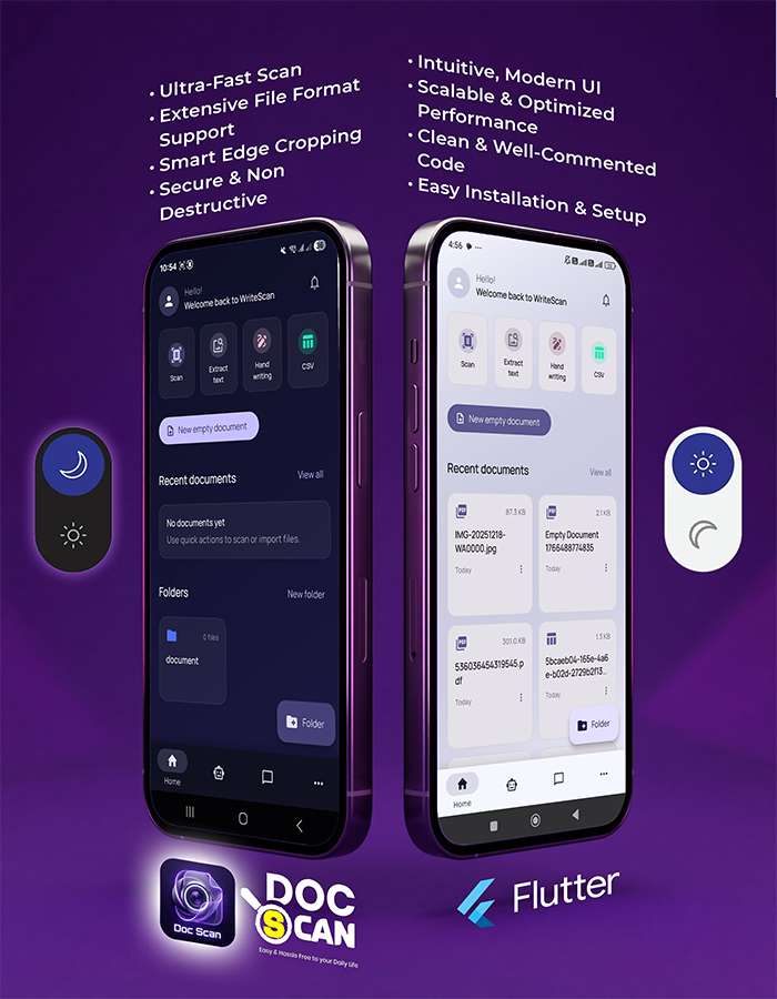 Doc Scanner is a Flutter-based mobile application designed to scan, store, and work with documents. It includes OCR support, cloud sync, and AI-powered features such as document Q&A and summaries.