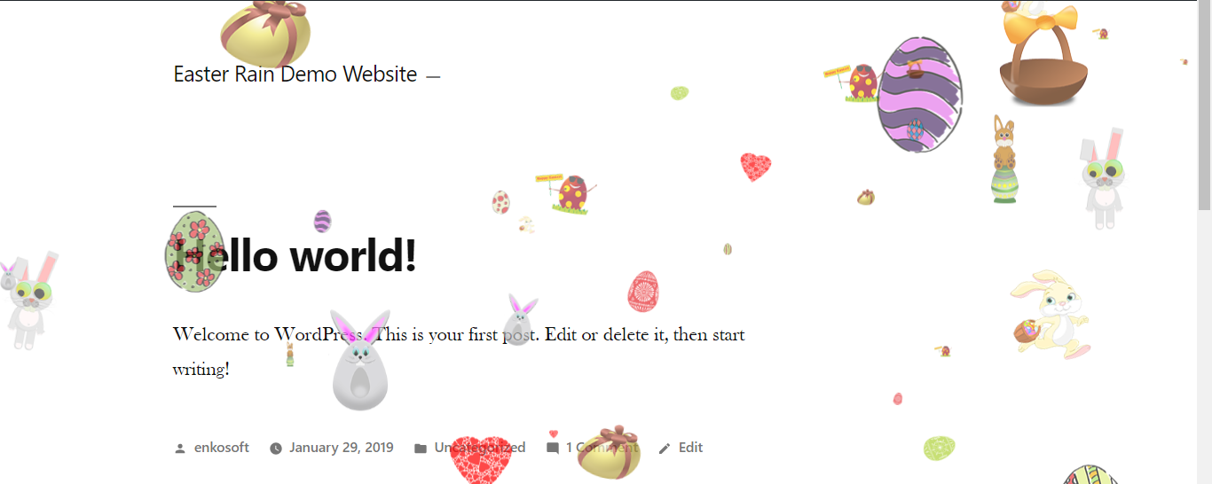 Easter Rain makes to rain on your website! You can choice how you want to rain. This plugin have many options that can help you make your perfect Easters’s Rain for your website.