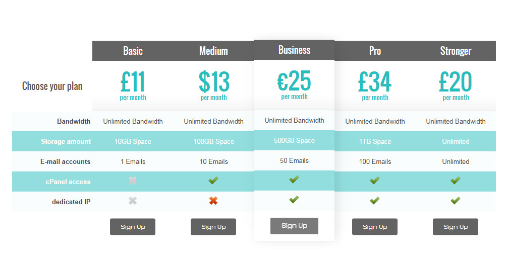 - 9 Content Elements for Pricing Table