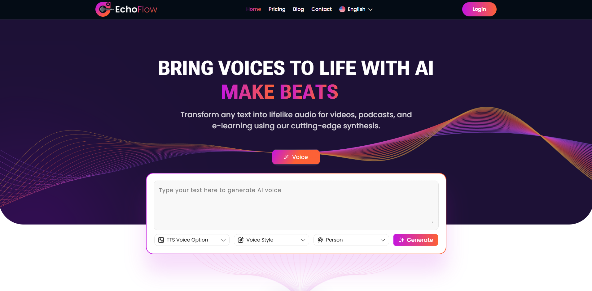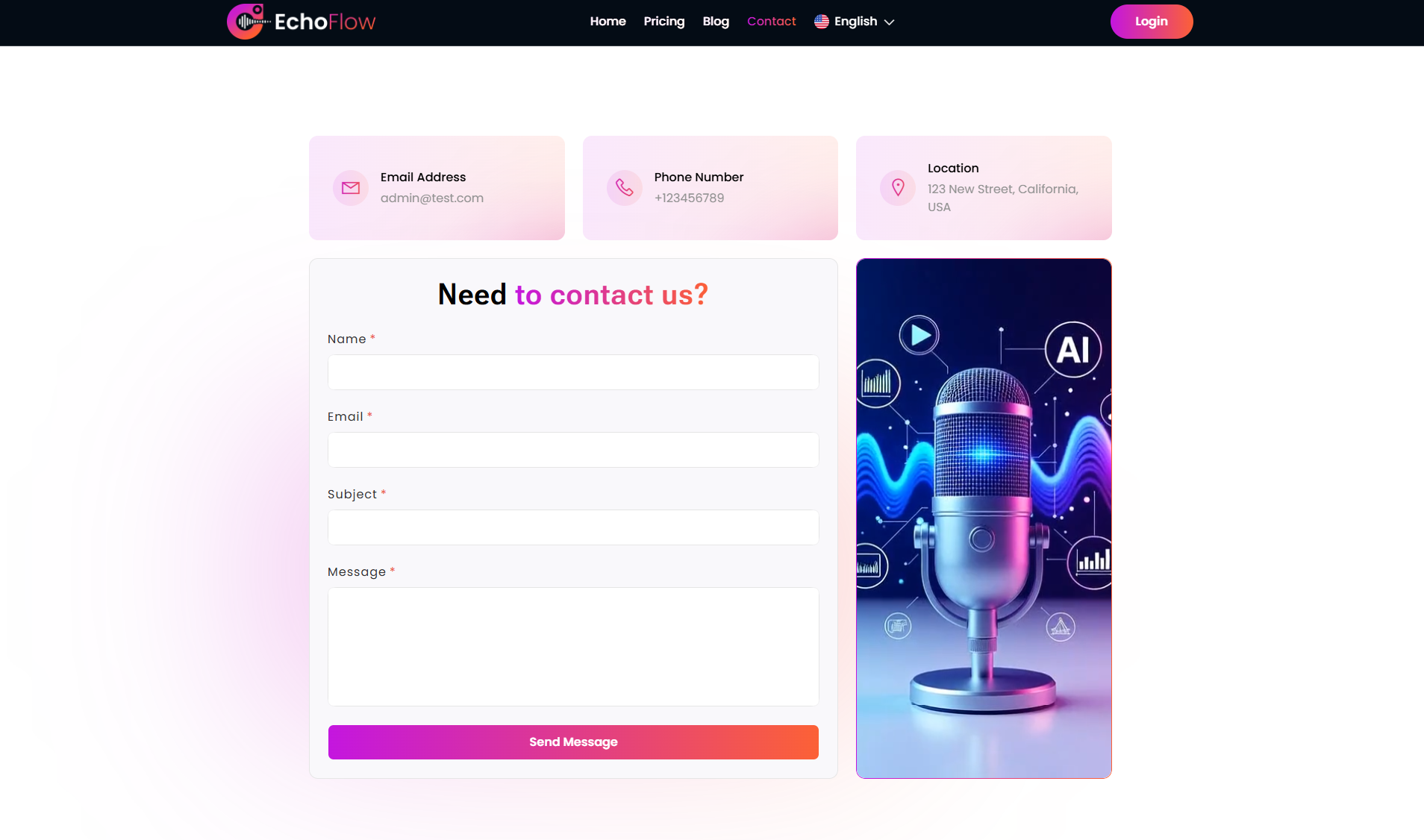 EchoFlow – is a powerful AI-powered Text-to-Speech (TTS) SaaS platform that instantly converts text prompts into high-quality, natural-sounding audio files. Users can customize their audio by selecting from multiple voice styles, tones, and personas. The platform features a flexible credit-based subscription system with monthly and yearly packages, managed by the admin to control usage and credits. EchoFlow offers seamless audio playback, download options, and comprehensive admin controls, making it an ideal scalable solution for businesses, content creators, educators, marketers, podcasters, and anyone seeking an easy-to-use SaaS voice generation service.