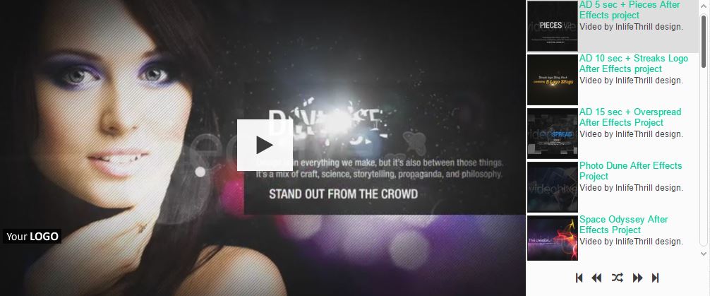 Playlist can be fully customized to fulfill your website needs and trends. You can manage order of videos in playlist, and also, manage which video from backend list will actually show in the playlist in frontend (which means you can have large number of videos in your admin area, but show only certain videos, and order them as you wish), so you have full control of displaying your videos. Playlist position can be changed from Right side to Bottom. Items in playlist are fully customizable so you can choose to have: thumbnails with texts, only texts, or only thumbnails.Translate to your language