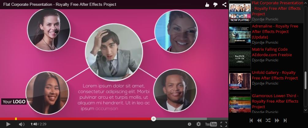 YouTube videos can be played without distraction of youtube elements like Watch later/Share/Logo/Title/Related videos. Simply play YouTube videos like any mp4 video, without user knowing the source of the video. See example.Self-hosted videos