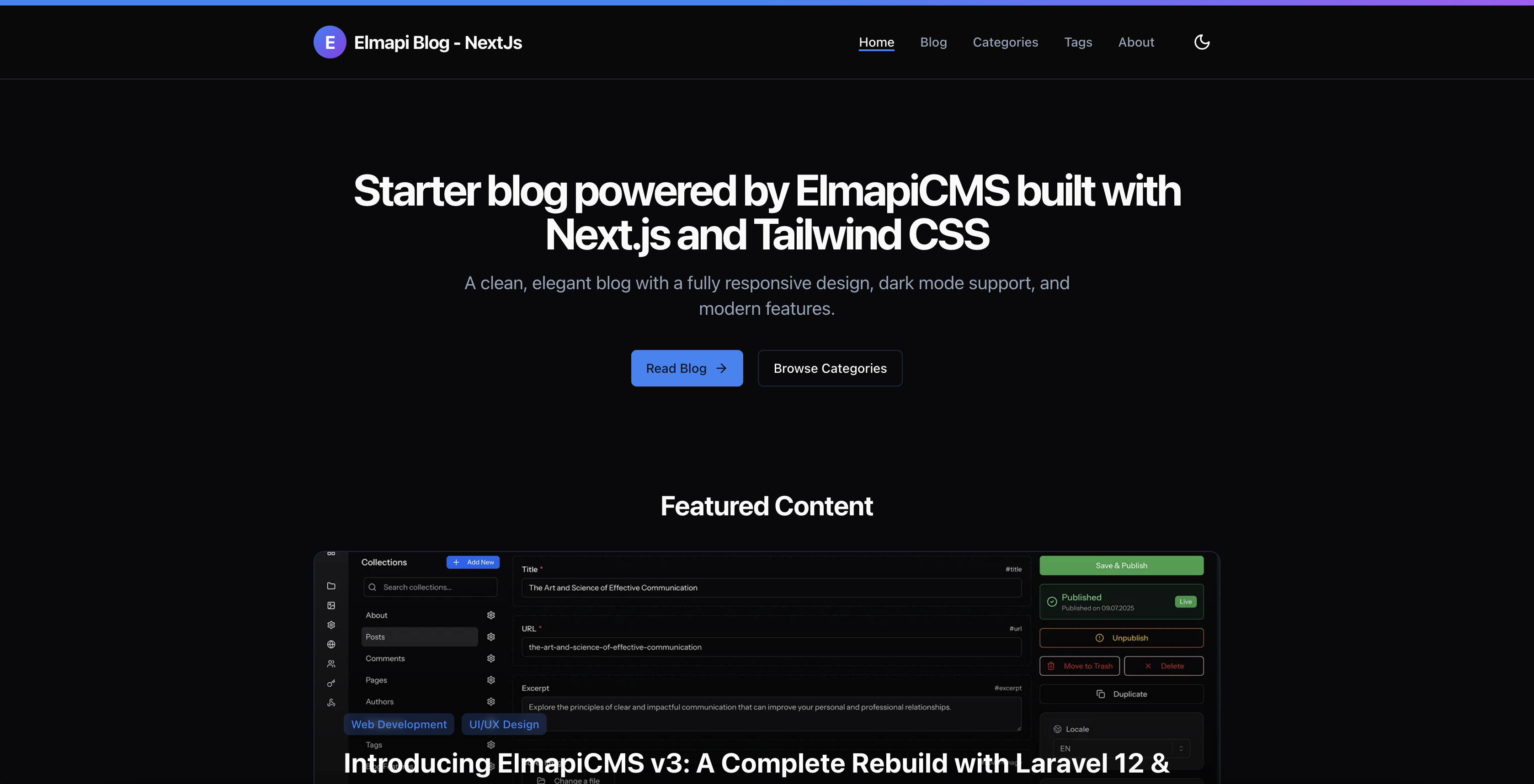 Blog (Next.js) Starter Template: https://blognextjs.elmapicms.com/