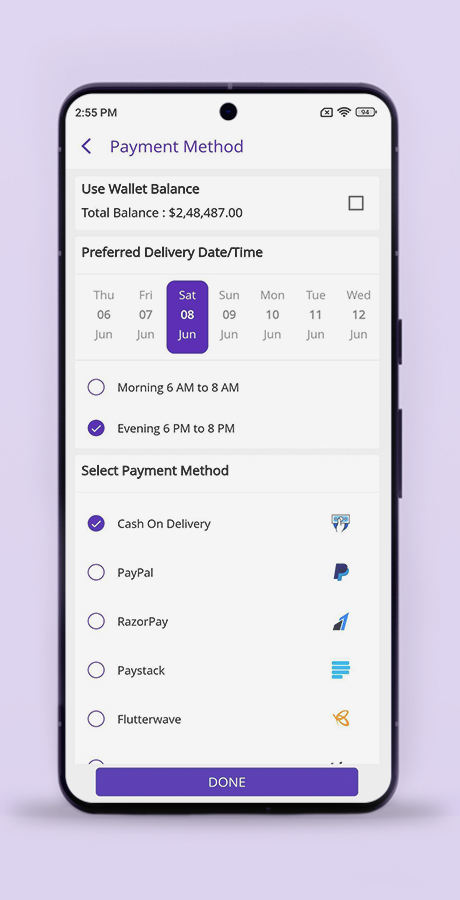 + Item-wise payment method selection. + Product-wise COD option Enable/Disable. + Product comparing feature before buy + See all customer images section of Reviews with images + Added product variant in the cart section and all other screens as well + Display Prices including taxes in App + Added an option for products with including Taxes or Not + OTP validation in delivery boy panel + Version update popup dialogue + Bulk upload of products + Fixed Area wise delivery charges + Added Minimum amount for free delivery + Fixed getting delivery charge as a refund on cancel item or order even if not paid + Improved Media section, Given the upload image feature in the Media model itself + Fixed Commission to the delivery boy on the successful order issue + Fixed showing other users' records when try to search address table + Added promo code and promo discount in orders table admin and delivery boy panel + Improved promo apply and validation + Dynamic currency symbol orders table header + Fixed Register loading only issue when email settings wrong + Displayed OTP to the admin and user on the order detail page and added OTP validation in the delivery boy panel
