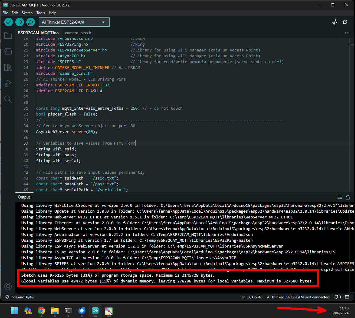 Hi. I got some errors C:\Users\A\Desktop\esp32cam\2024-02-09 – ESP32-CAM Live Streaming Flutter App\ESP32CAM_MQTT\libraries\ESPAsyncWebServer\src\WebAuthentication.cpp: In function ‘bool getMD5(uint8_t, uint16_t, char)’: C:\Users\A\Desktop\esp32cam\2024-02-09 – ESP32-CAM Live Streaming Flutter App\ESP32CAM_MQTT\libraries\ESPAsyncWebServer\src\WebAuthentication.cpp:74:3: error: ‘mbedtls_md5_starts_ret’ was not declared in this scope; did you mean ‘mbedtls_md5_starts’? 74 | mbedtls_md5_starts_ret(&_ctx); | ^~~~~~~~~~~~ | mbedtls_md5_starts