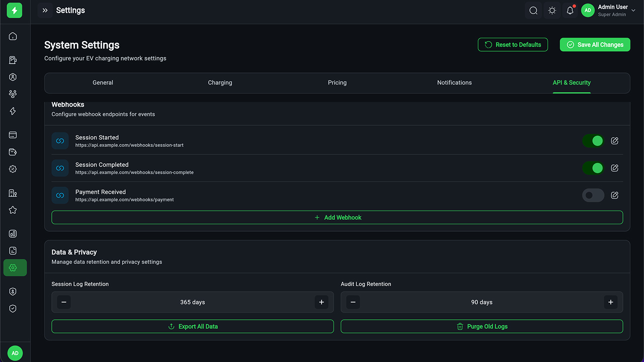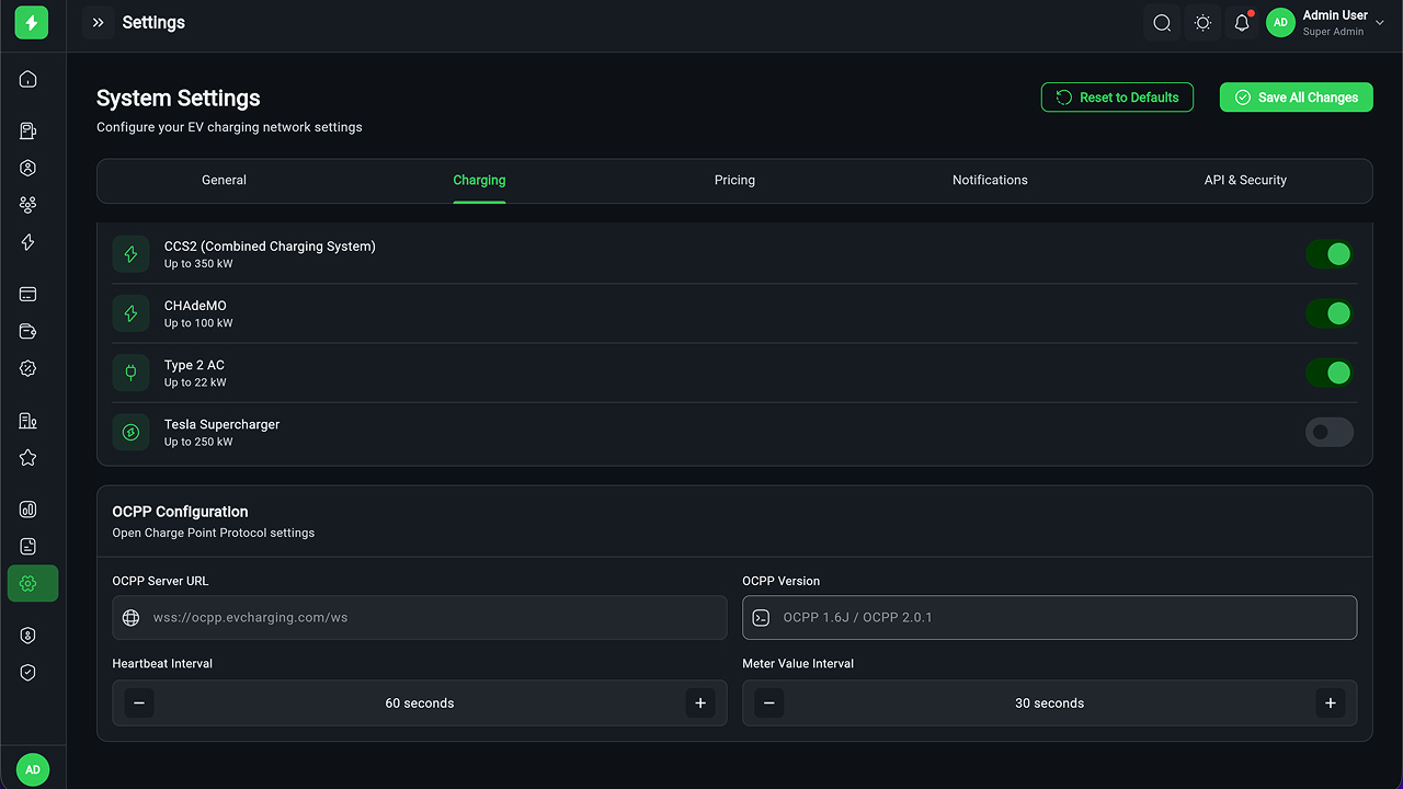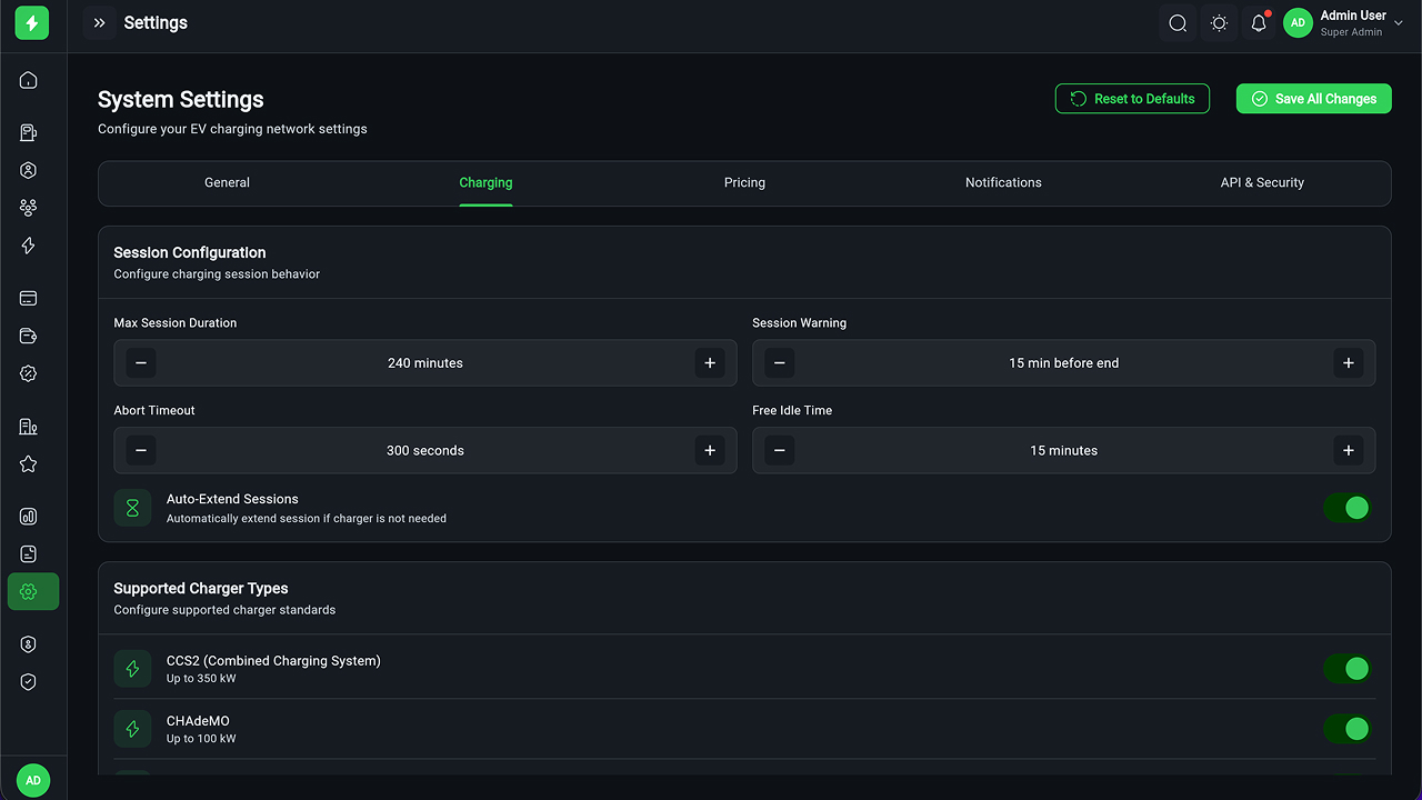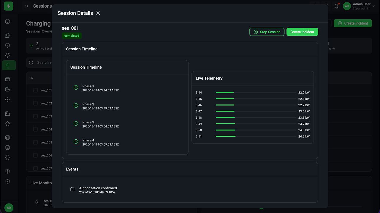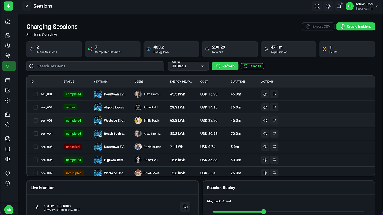 - Session Monitoring – Real-time charging session tracking