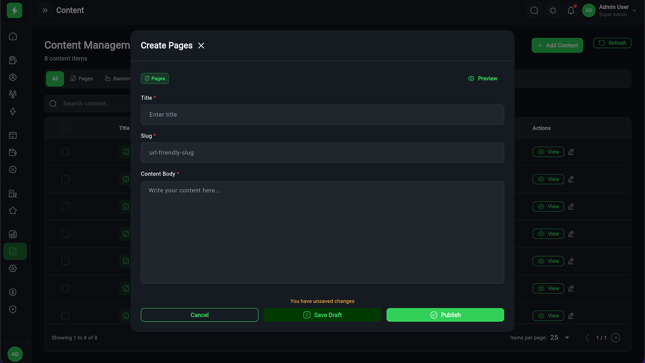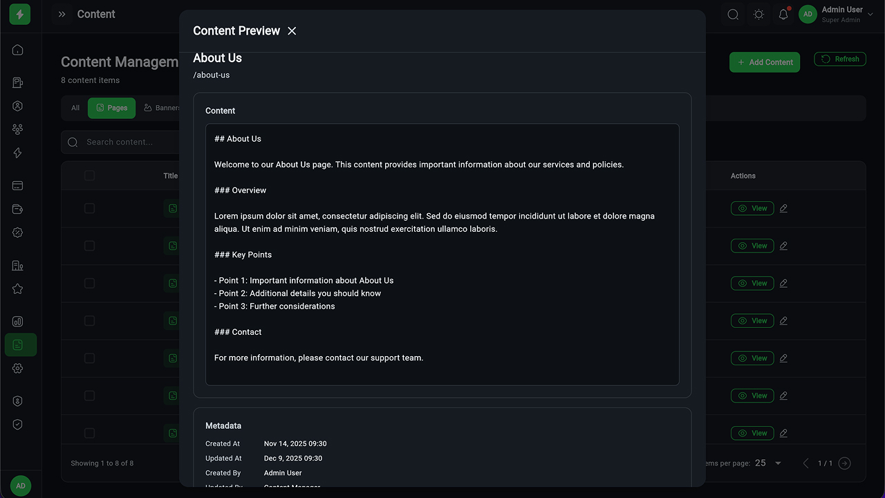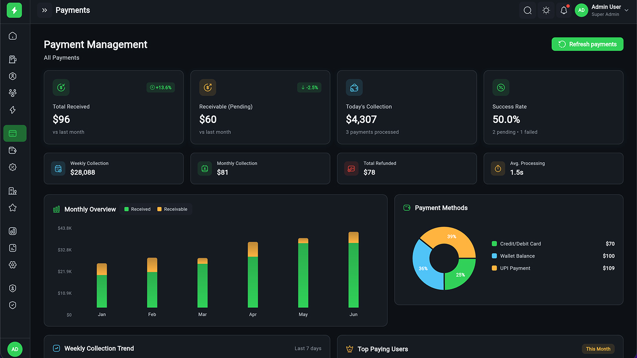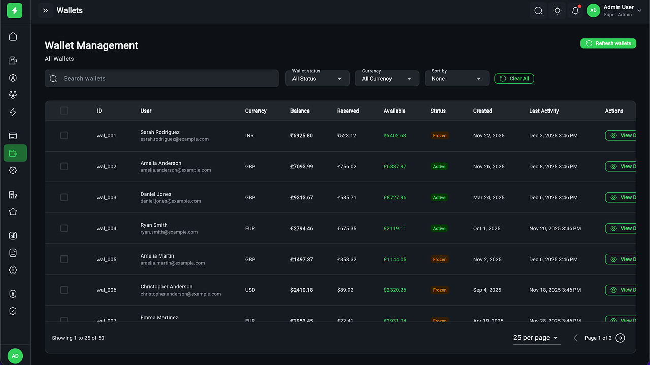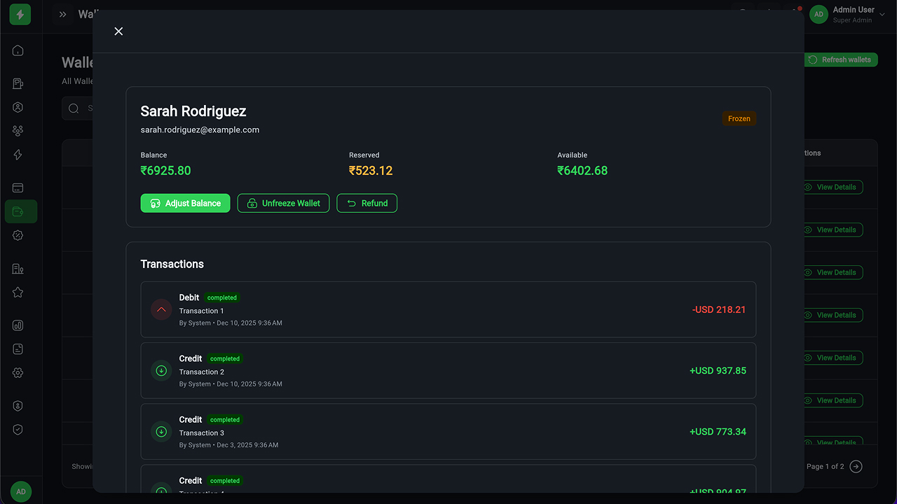 - Payment & Wallet Management – Transactions, refunds, financial reports