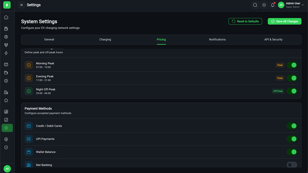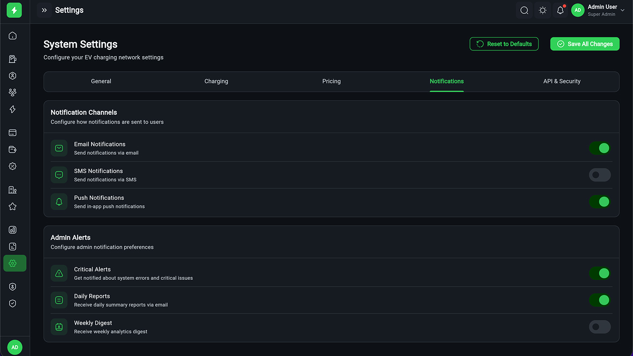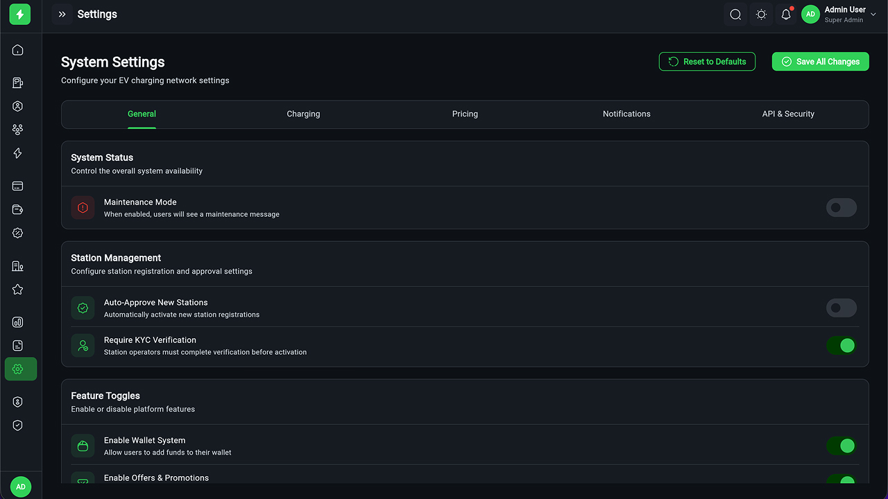 ️ EV Charging Admin Panel – Flutter Web Dashboard (60+ Screens)