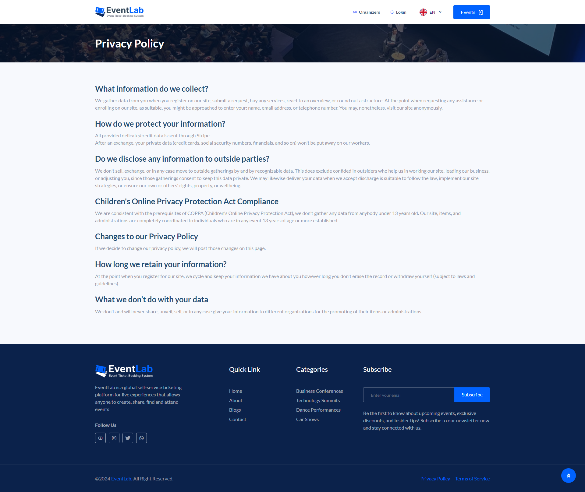 Our well-architected, powerful, and secure web application is optimized for performance and SEO, ensuring your customers enjoy a hassle-free payment experience on any device. One of the benefits of using our system is that it can significantly reduce the time and cost involved in developing a custom platform from scratch. Anyone can simply purchase our system and launch their own Event tickets selling marketplace business website in a matter of days. More importantly things, We ensure robust security measures such as encryption, password hashing, OTP, and Email & SMS notification, to keep users and their activity secure from hacking and cyber-attacks. Security is our main priority, and our system is protected by strong layers of security.