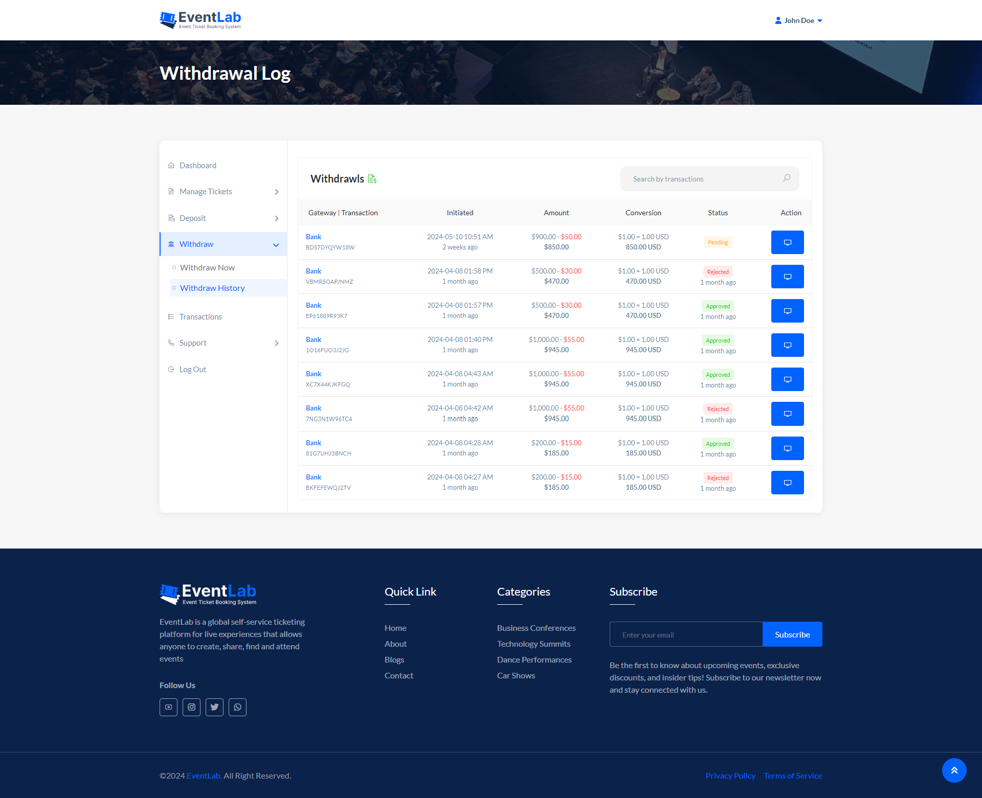 - Withdraw History.