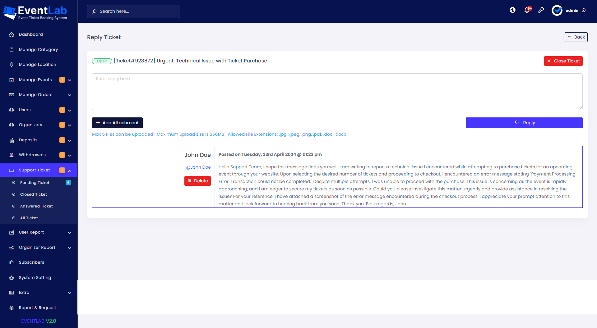 - Support Ticket Management.
