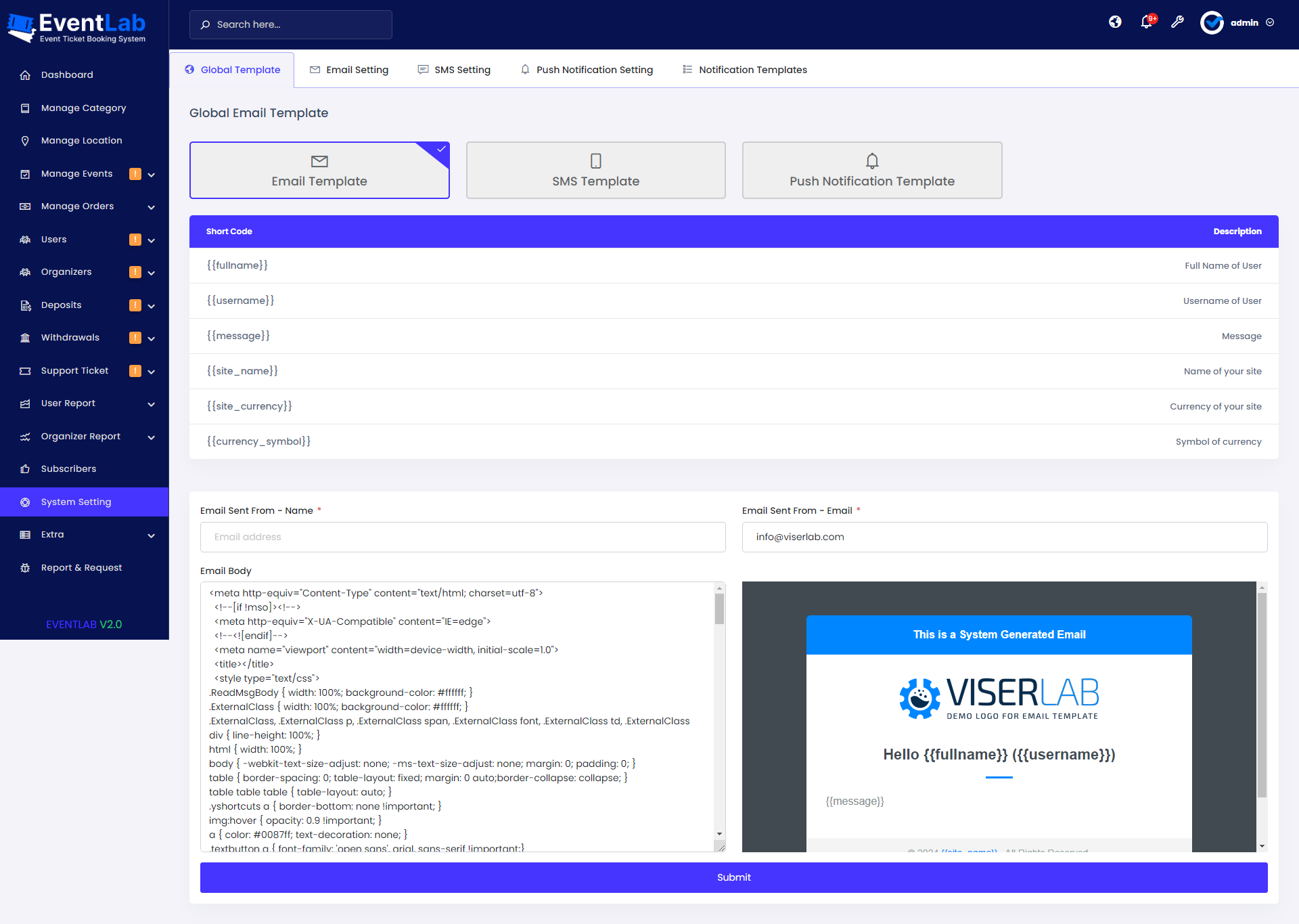 Organizer Panel: https://script.viserlab.com/eventlab/organizer/login