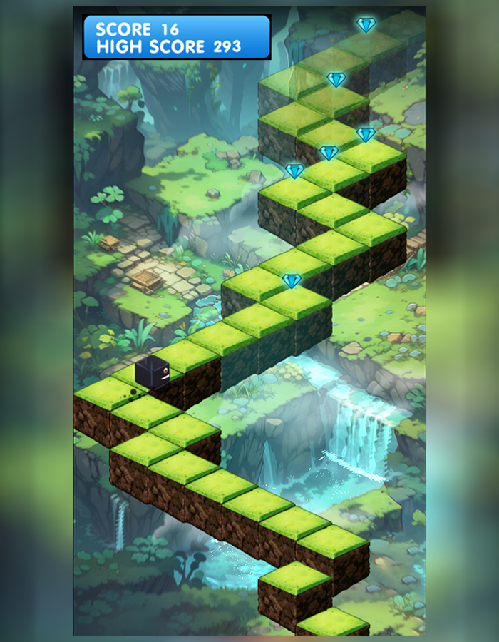 The player has to control the cute block towards his path, and simply tap to change direction.