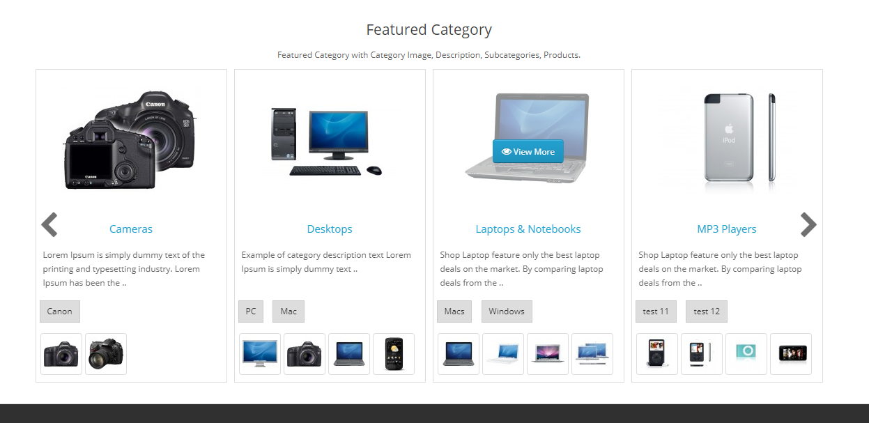 - Display Category Image, Name, Description, subcategories, Products.