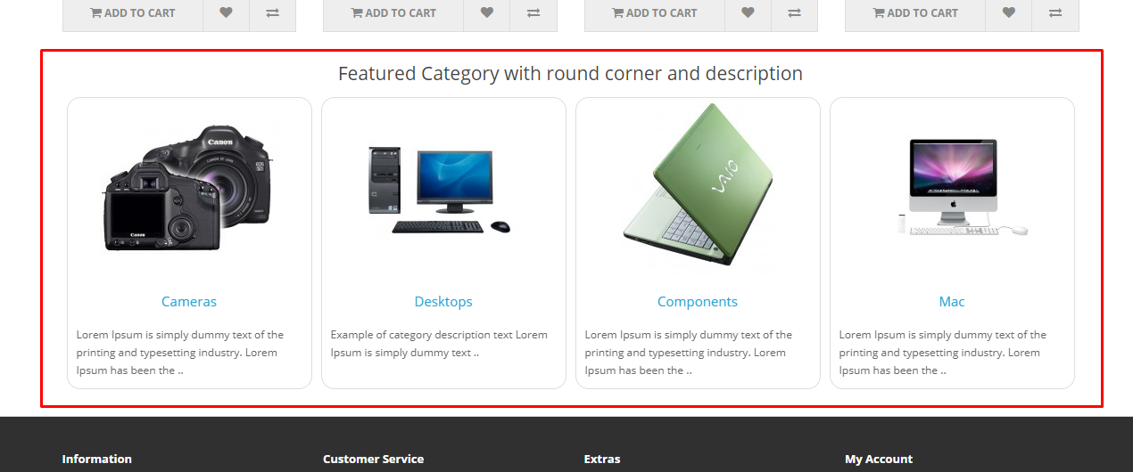 With this Extension, you can create different layouts to display the featured category walls. You can set Category Walls on different pages. All display and layout settings are managed by the admin panel. It is clean and responsive, which makes a Home Page attractive.
