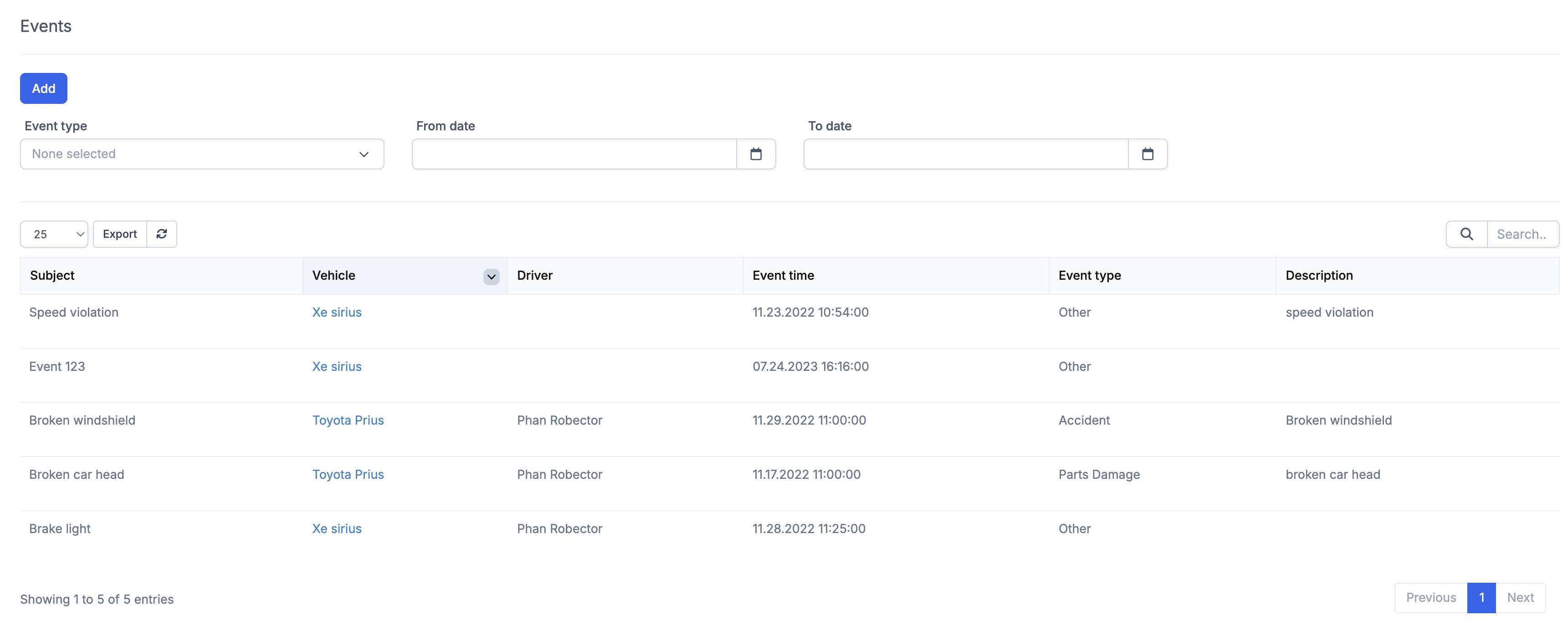 - Utilization Summary Report: Shows usage (e.g. distance traveled) per vehicle based on meter entries.