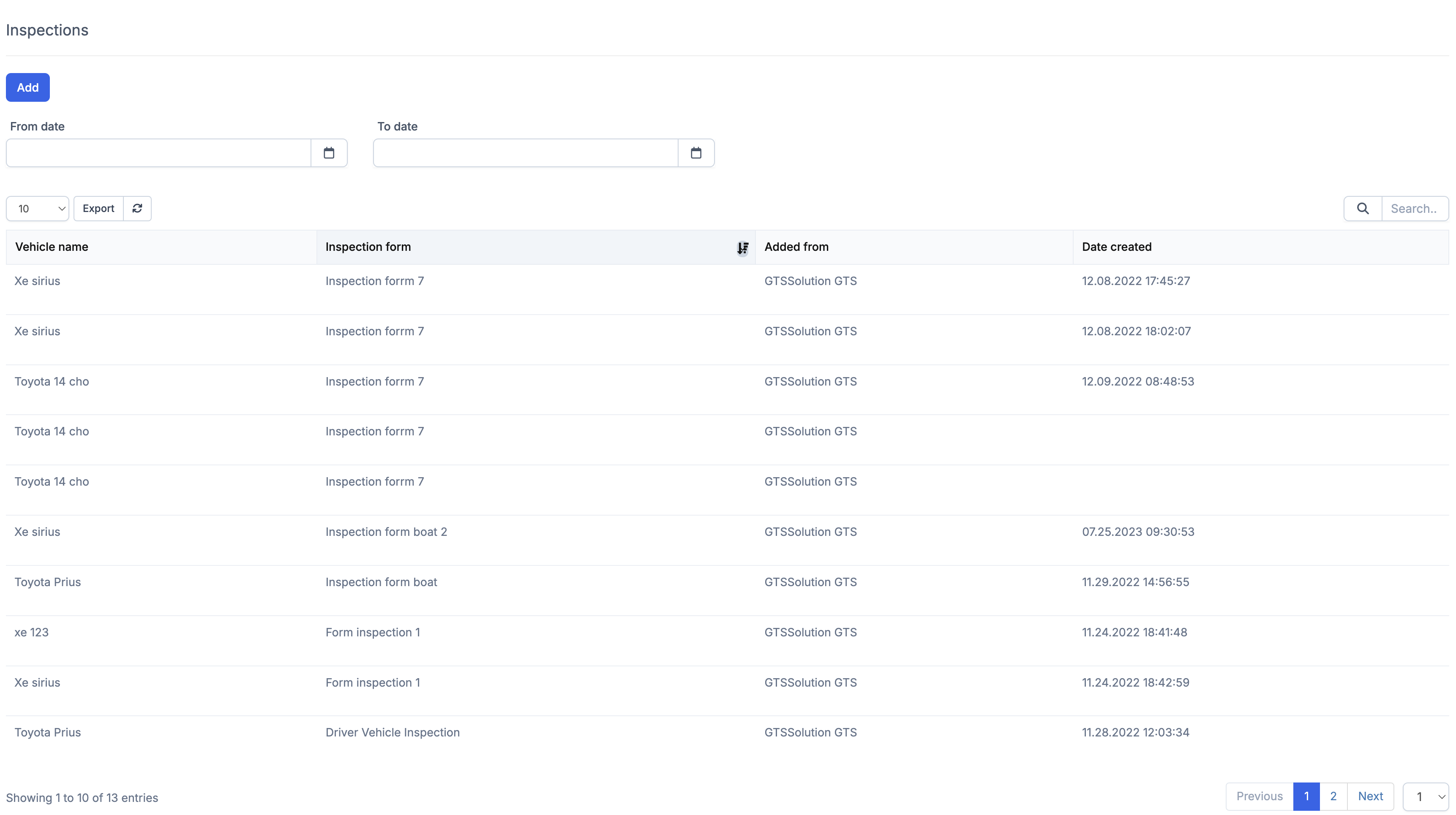 - Inspection Submissions Summary: Aggregate inspection data grouped by user or vehicle.