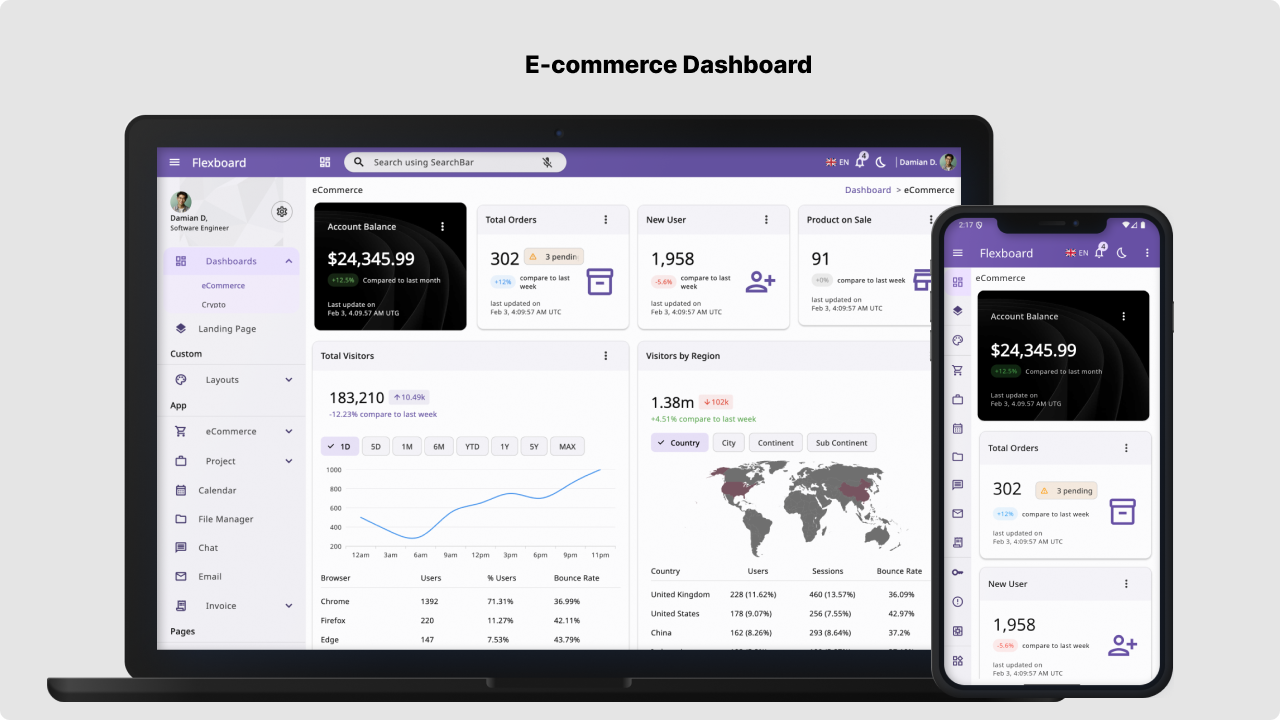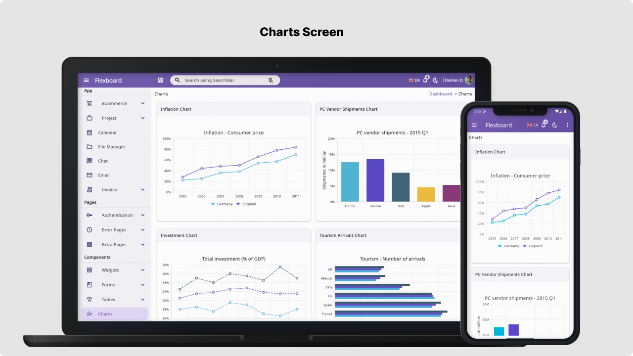 Flexboard is the Ultimate solution for flutter admin dashboard template. Launch your next application on iOS, Android, Web, Windows, macOS, and Linux from a single, clean Flutter codebase. Our Flexboard Admin Dashboard is more than a template; it’s a complete, production-ready starter kit packed with features like dynamic charting, multiple dashboard layouts, advanced data tables, and full internationalization support. With pre-built translations for 6 languages (including Arabic, Spanish, and Chinese), a modern component library, and a clean architecture, you will save hundreds of development hours. Stop building from scratch and launch your professional, cross-platform application today!