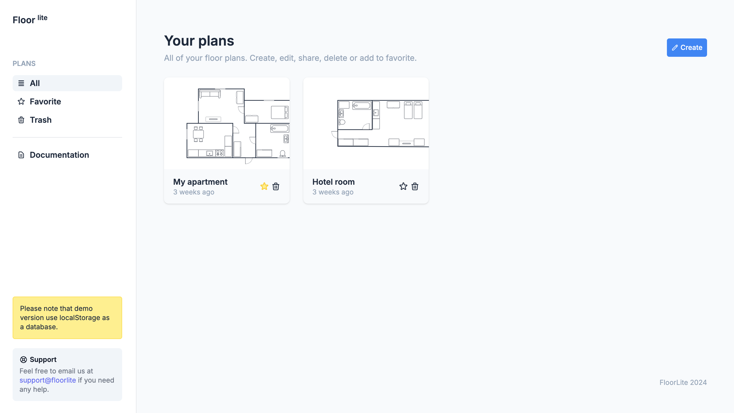 FloorLite is an interactive app designed to help create basic floor plans quickly and easily. It provides basic tools you need to sketch rooms. You can draw walls, place doors, windows, and arrange furniture with just a few taps.