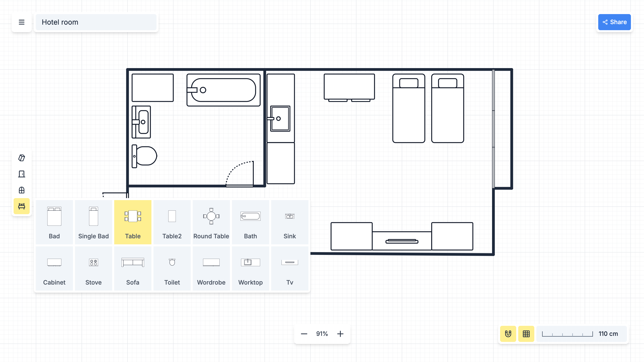- Text Element: Add text for labeling rooms or adding simple annotations.