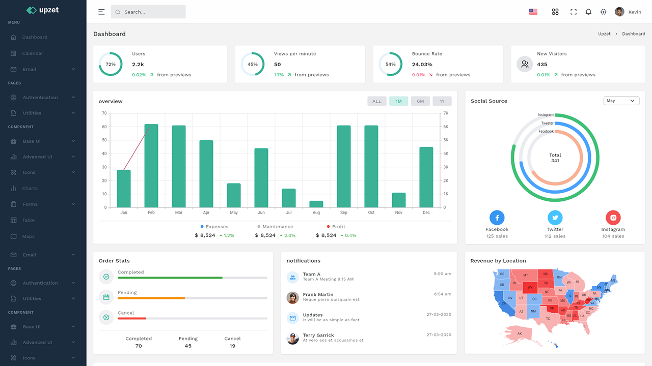 Upzet – Modern Multipurpose Flutter Admin Dashboard