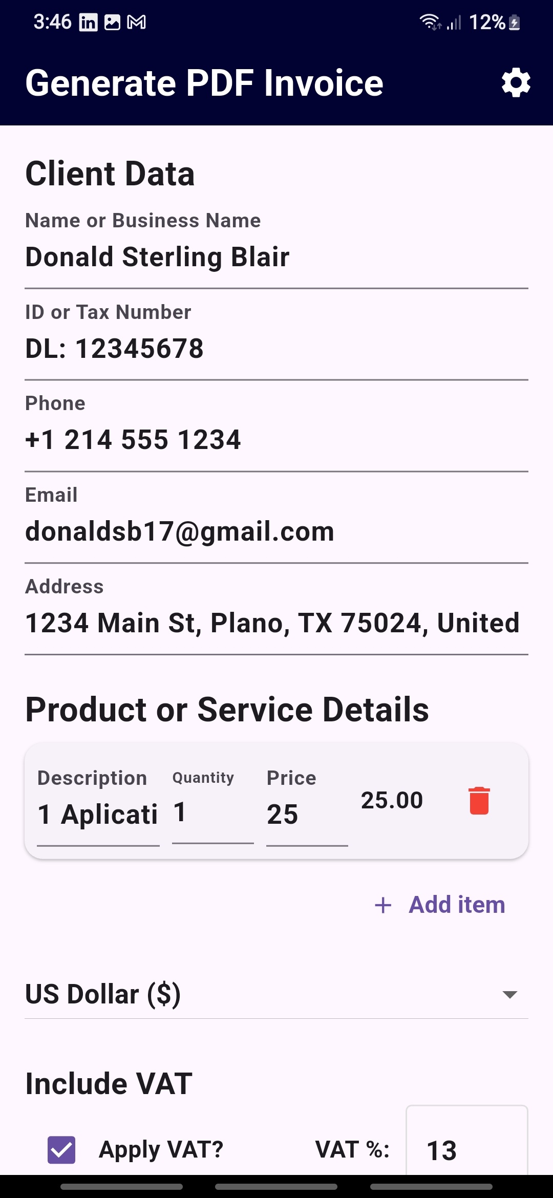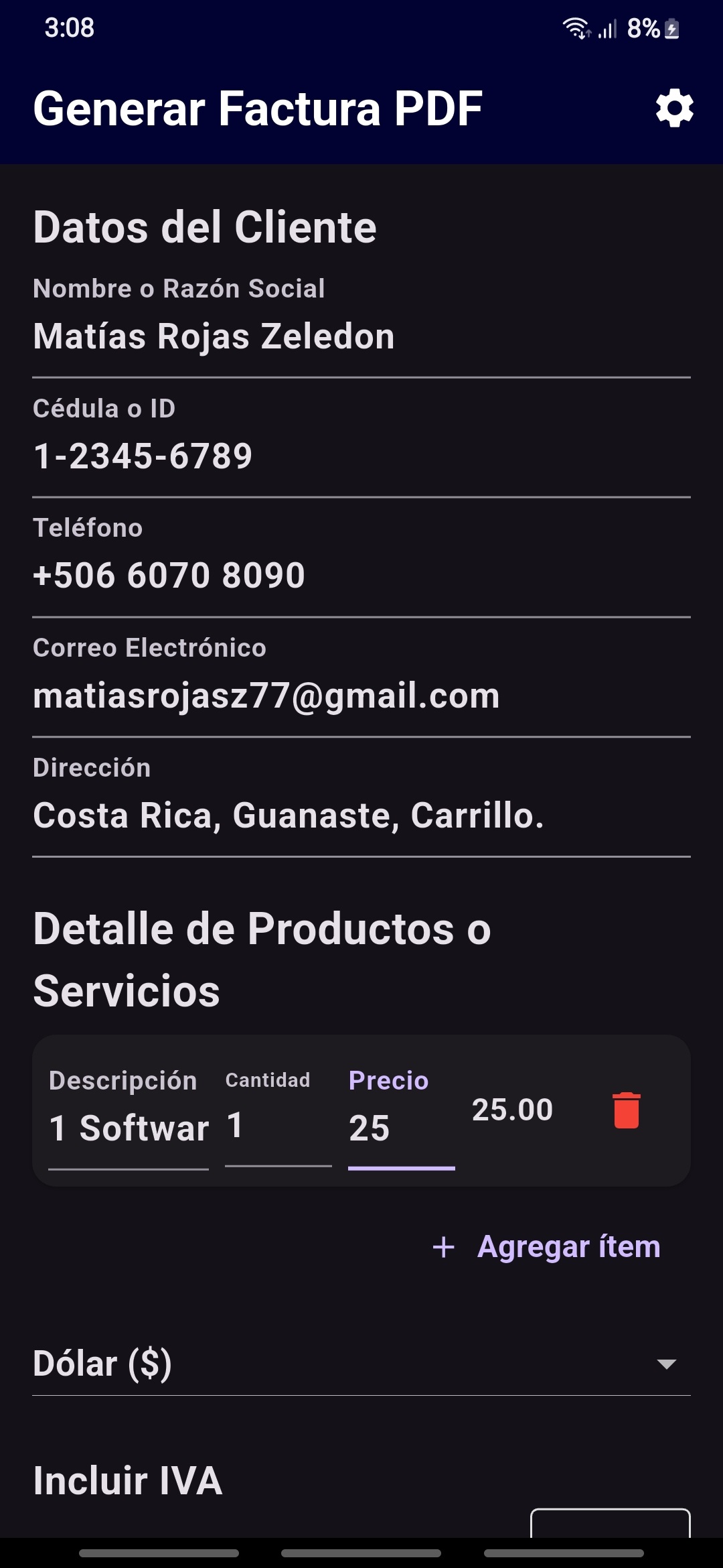 A professional Flutter application to generate invoices in PDF format. This project is designed for businesses and freelancers who need a fast, simple, and customizable solution to create and manage invoices from mobile devices or web browsers.