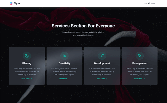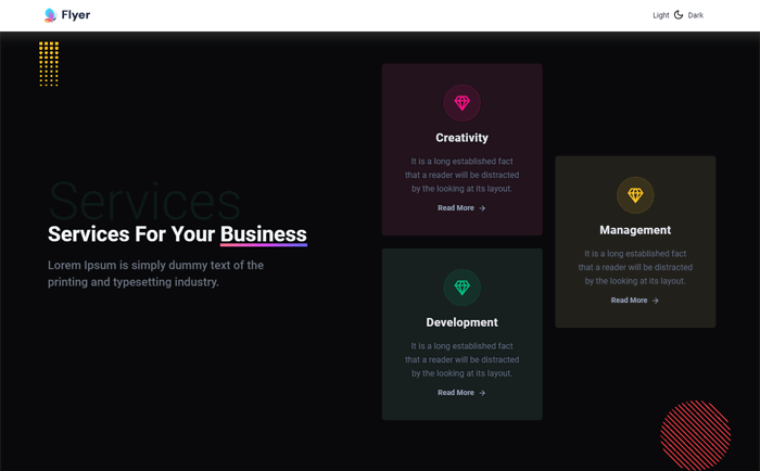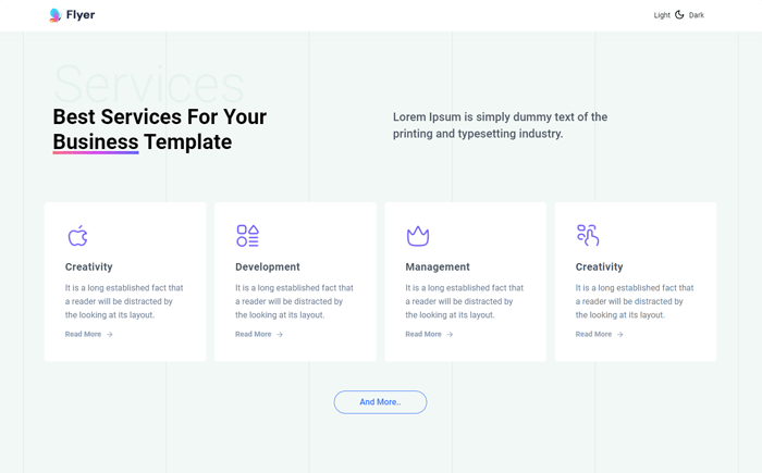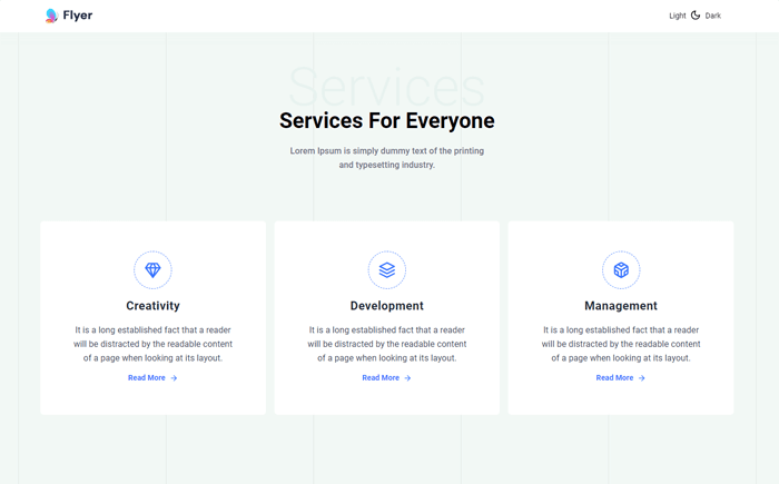 Flyer Services template in Tailwindcss coded with Amazing beautiful and clean codes! Some powerful HTML & CSS files 100% W3 valid web standards. and also a 100% responsive, mobile-first Pricing Table for your business, agency, service sale website.