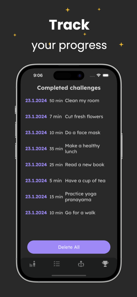 All your completed challenges are meticulously logged within the app, providing you with a tangible record of your achievements. Track the date of completion, challenge names, and the time invested, offering a visual representation of your progress over time.