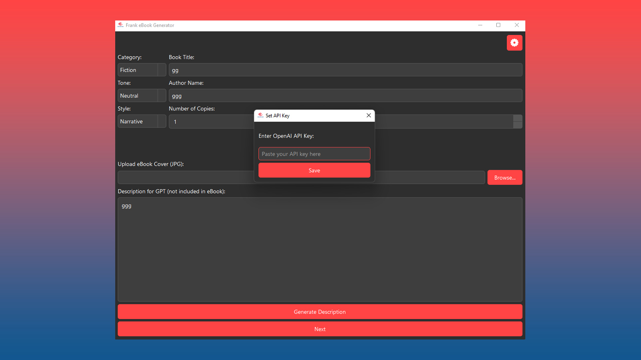 Frank eBook Generator is a powerful AI-driven desktop application that enables you to create professional eBooks effortlessly. Using OpenAI’s GPT-4, this software generates high-quality content, structures chapters automatically, and formats everything into a polished eBook. Whether you’re an author, marketer, or educator, this tool makes eBook creation faster and easier than ever.