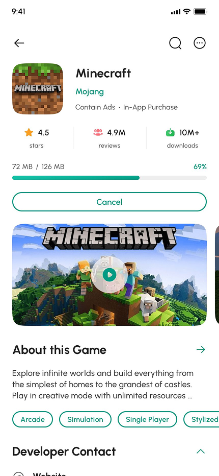 - Game Details (Install / Purchase, Game Preview, About Game, Ratings & Reviews, Share, Add to Wishlist, Flag as Inappropriate / Report)
