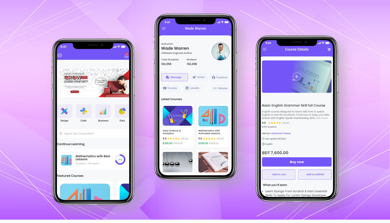 GetLMS comes with two Mobile Applications with the admin panel, instructor panel, flutter web app and landing page:
