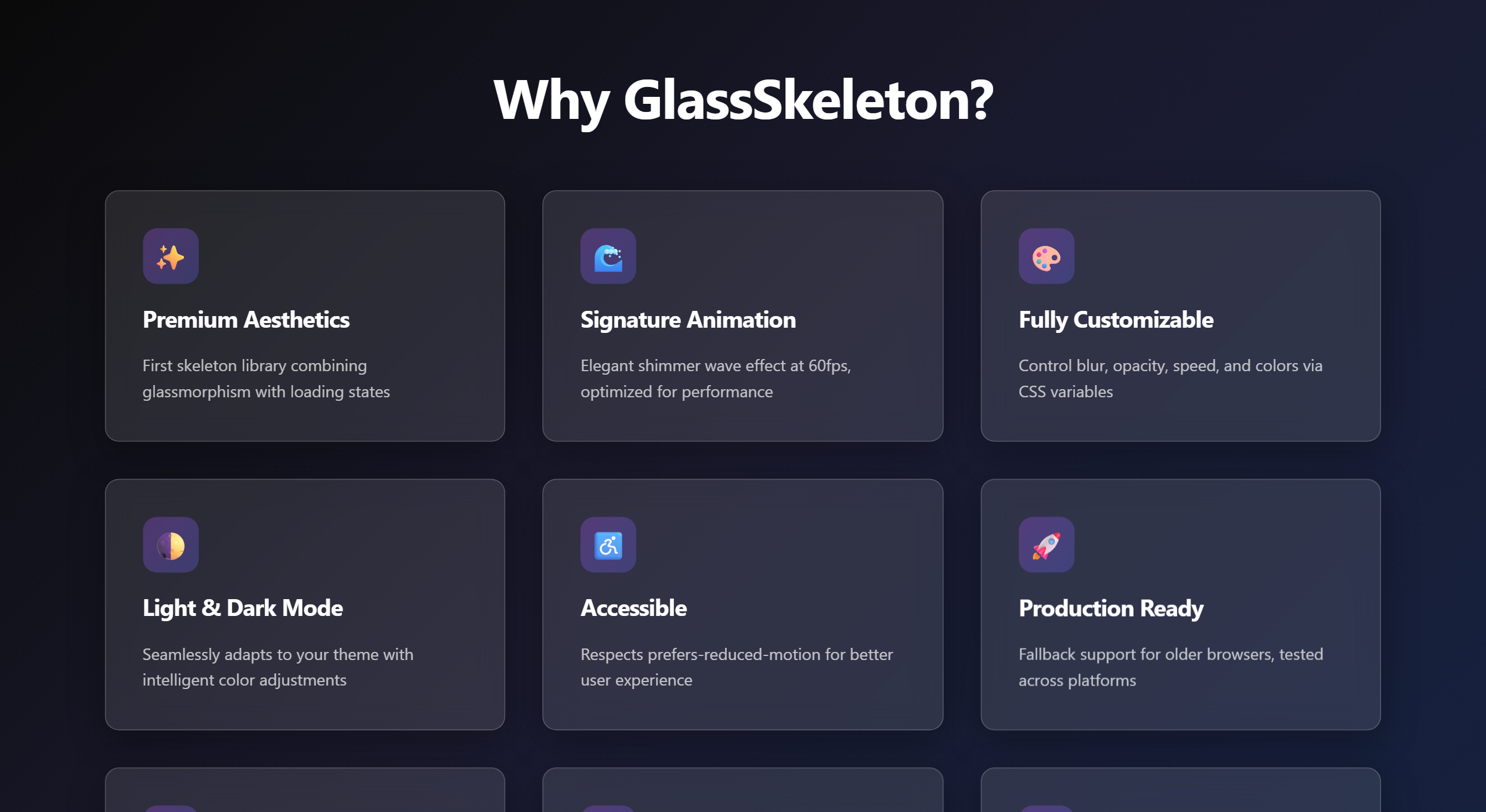 - First Glassmorphism Skeleton Library: Pioneering combination of glassmorphism design with loading states