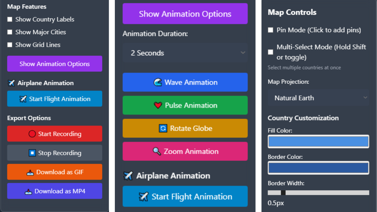 ✈️ Advanced Animations Airplane flight animations between selected countries
