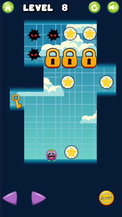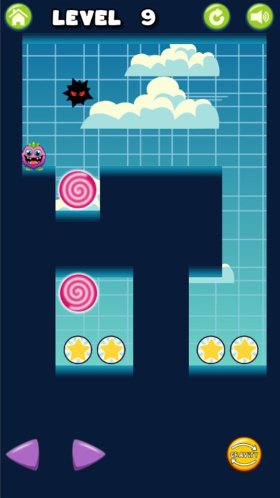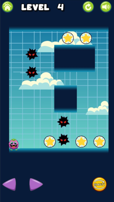 Gravimons is an exciting adventure game where a friendly monster must collect all the stars across 27 challenging levels. Players will have to manipulate gravity to help the monster navigate obstacles and gather the stars, all while avoiding dangerous enemies trying to stop it.