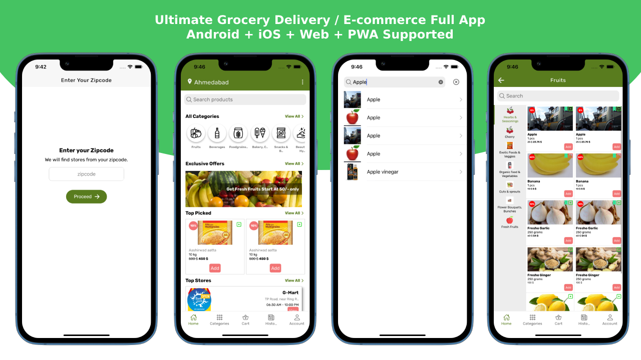 ionic 7 capacitor grocery / delivery services / ecommerce / multi vendors is fully functional and ready to use app with Laravel backend, you will receive 5 main apps(User App, Store App, Delivery App, APIs) including Admin Panel with support of PWA. App is regularly tested with Androird and iOS.App supports multi vendors, multi stores, multiple cities , multi languages and multiple payment gateway. the app is well documented with installations guides and online documantations.