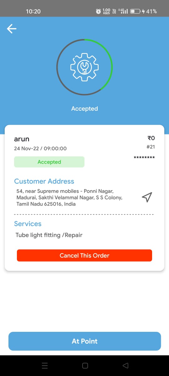 - Scheduled Order (Customer can schedule the services as per the requirement) - One or More order assigning option (Single partner can receive more than one order from different services) - Time slot algorithm (In customer application Dynamic time allocation is used to select the service time according to the partner availability) - Real time Google navigation (Partner can check the customer location using the google map navigation) - Push Notification (At every step of the process customer will receive push notifications) - Search Option (Services can be easily identify by using the search option) - Payment gateway (Razor pay and the wallet options are available for online payment gateway) - Cash delivery (Cash on delivery is also available in payment option) - Taxes management (Taxes for every payment can be manage from the admin panel) - Real Time address (Customer can add one or more addresses with the google map location) - Service availability(Can check whether the service is available or not in a particular region.) - Order Management (Every stage of the order status can be handle from the service partner application, without the admin interruption and the customer can track those status of their orders) - Order Cancellation (Both customer and partner can cancel the order after booking, before the service starts) - Query option (Customer can raise any enquiry in the query option)