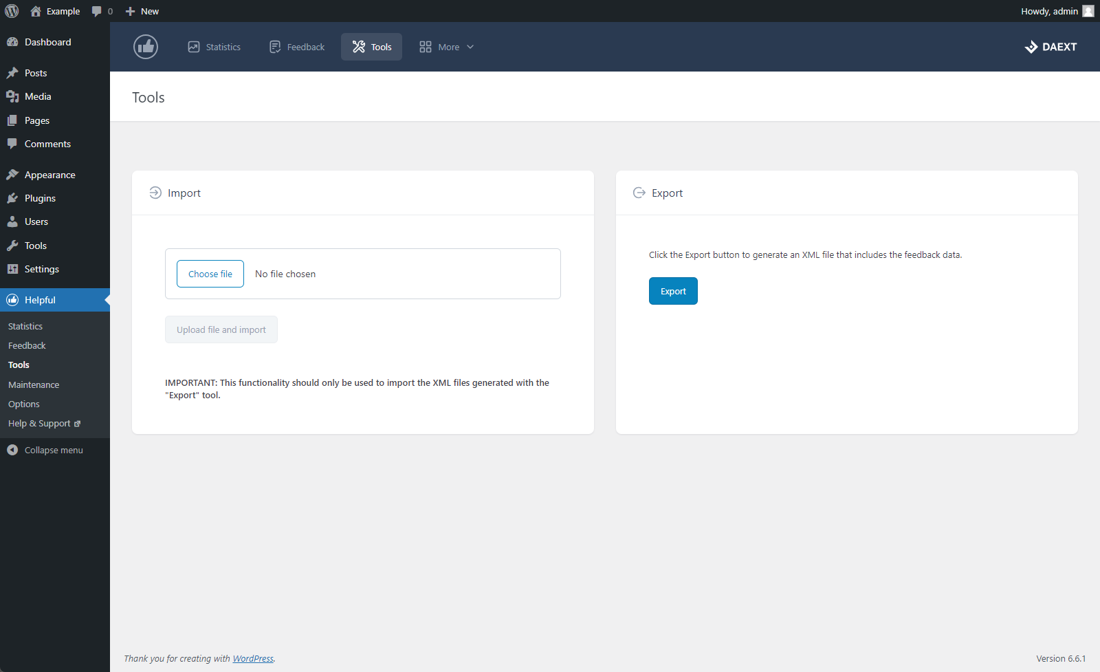 08.05.2025 - v1.14 - Fixed PHP notice caused by early use of translation functions - Fixed JavaScript deprecation notices for back-end functionality - Bug fix applied to PluginUpdateChecker class, updated to version 1.0.11. 15.12.2024 - v1.13 - Added support for seamless updates delivered directly from our server - Fixed JavaScript deprecation notices for back-end functionality - Added the load_plugin_textdomain() function - Fixed error in the date picker field available in the “Statistics” and “Feedback” menus 03.09.2024 - v1.12 - Bug fix 01.09.2024 - v1.10 - Bug fix 30.08.2024 - v1.09 - Bug fix 30.08.2024 - v1.08 - Major back-end UI update - The "Feedback" menu has been added - New options added 20.06.2024 - v1.05 - Fixed a bug causing JavaScript errors in the block editor when enabled with custom post type 24.10.2023 - v1.04 - The "Itemized Feedback" report type has been added - Refactoring 11.09.2023 - v1.03 - Fixed a CSS issue that prevented the SVG icons from being properly displayed on Safari - Fixed PHP warnings 25.05.2023 - v1.02 - The form can now be added with a shortcode - The dynamic SVG icons of the form are no longer loaded with file_get_contents() but are stored in PHP variables - The "Feedback" column has been added to the post listing menu of all the post types - The form can now be conditionally displayed based on the user's capability - An option to automatically hide the feedback for posts older than the specified number of days has been added - Other minor improvements 09.03.2023 - v1.01 - Initial release