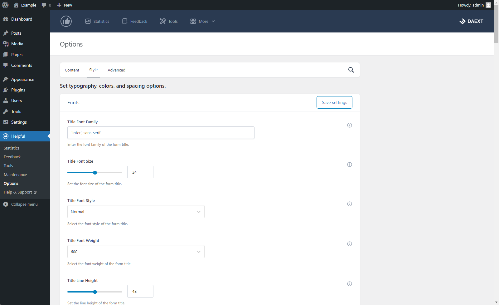 You can apply the typographic style of your website to the elements generated by the helpful plugin with dedicated Typography and Color options.