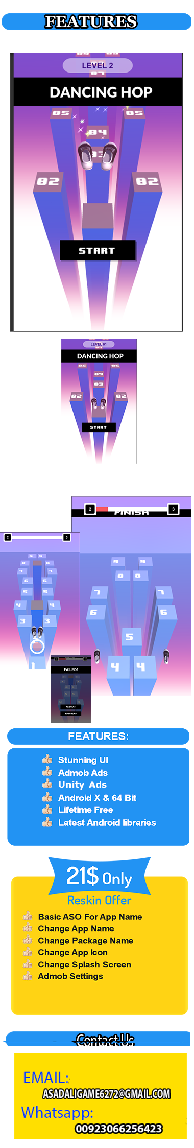 Hop Jump Unity Complete Source Code is a complete ready game ready to publish for play store, 64Bit Supported.