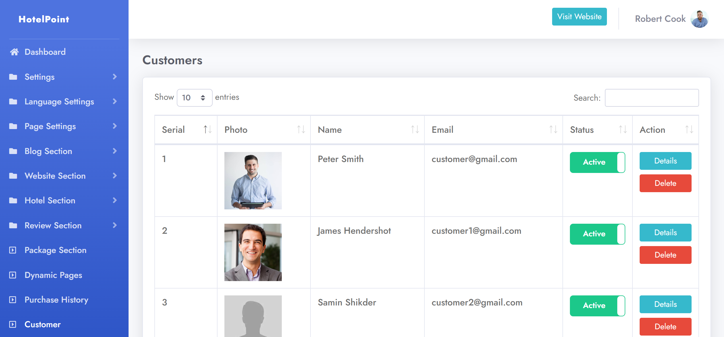 Customer Panel: https://demo.phpscriptpoint.com/hotelpoint/customer/login