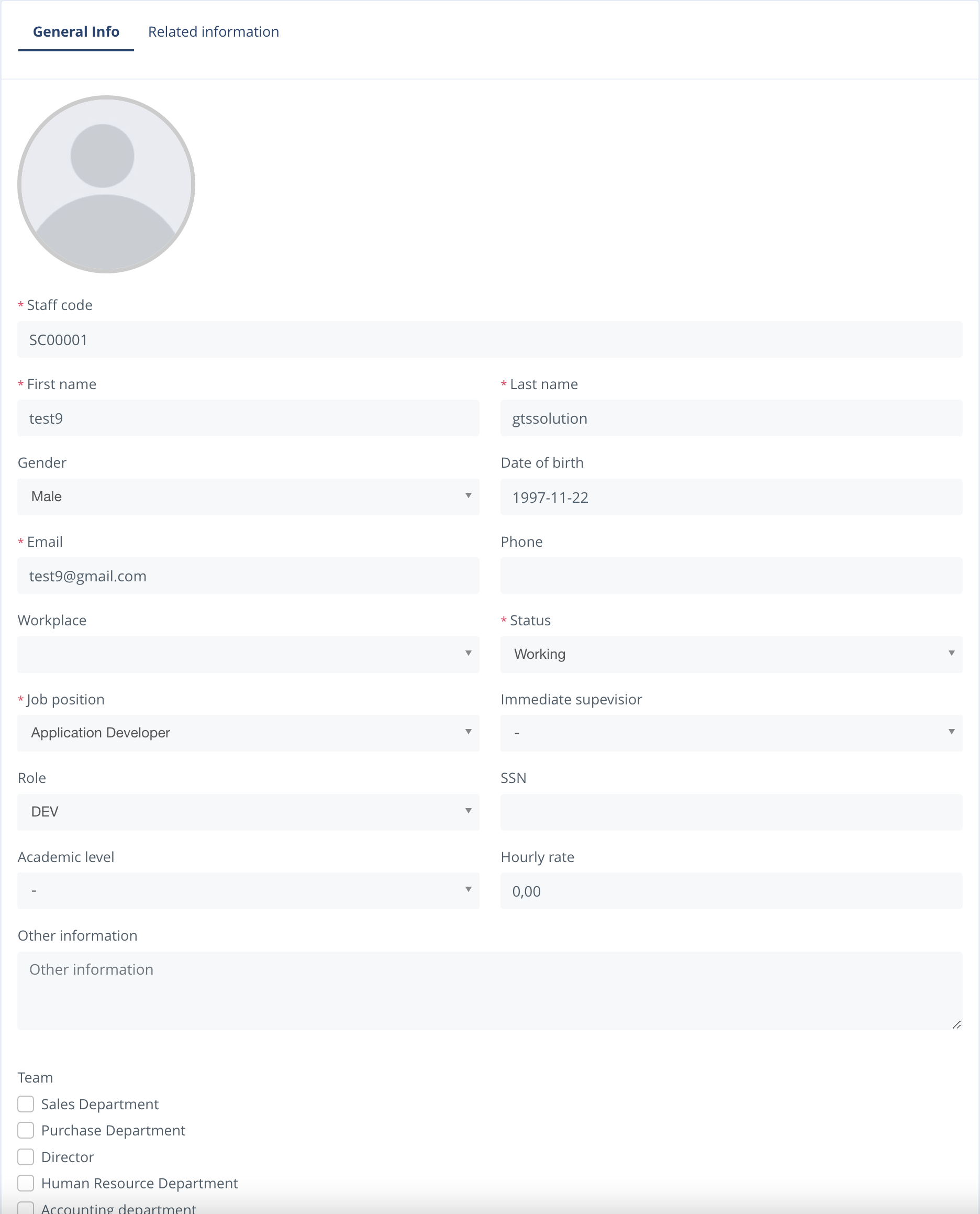 - Dashboard: Staff ratio by departments, Staff ratio by jobs, Staff ratio by age groups, Ratio of changes in staff by seniority, Staff status by months,Birthdays of the month,...
