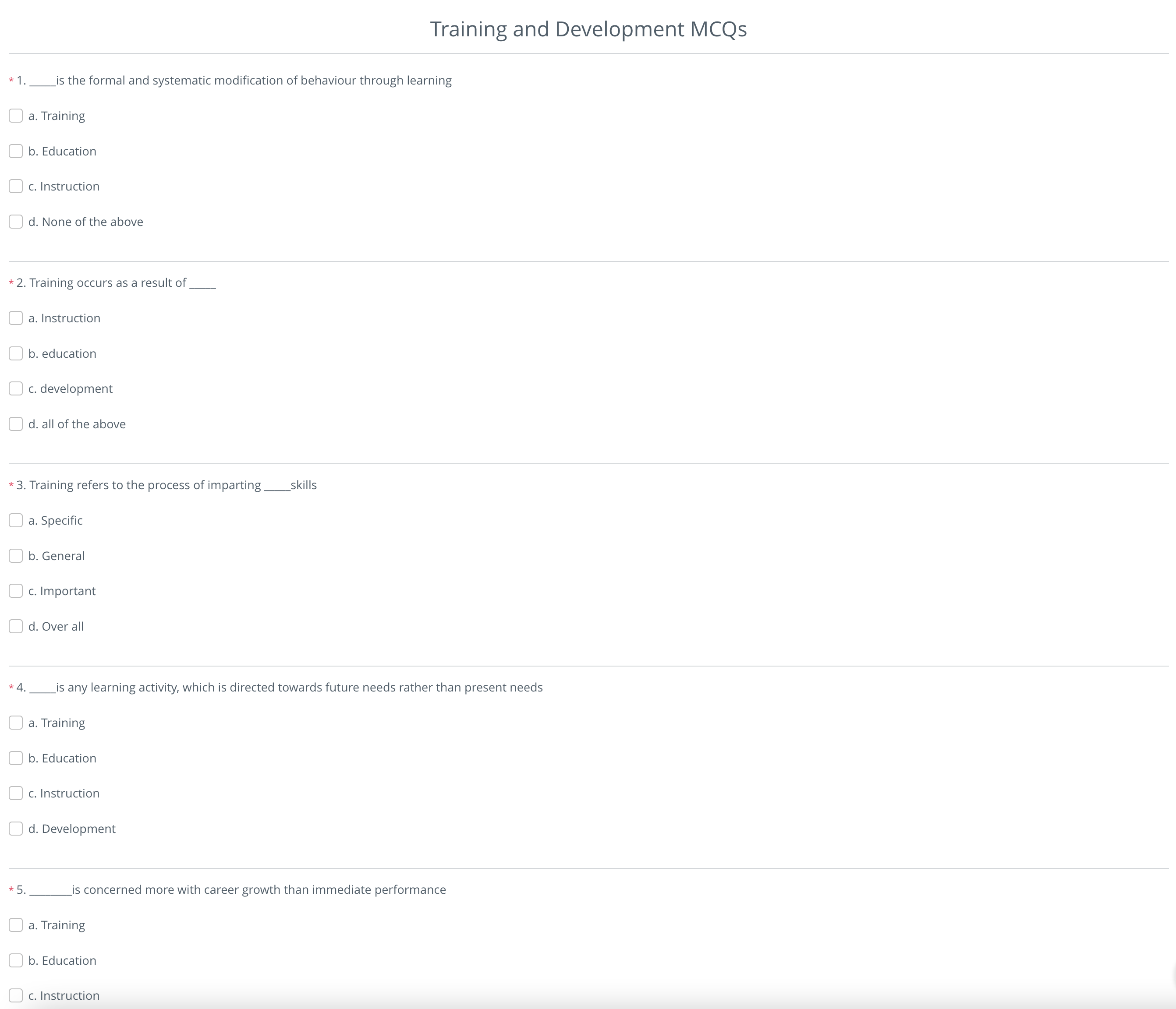 - Type of Training Management